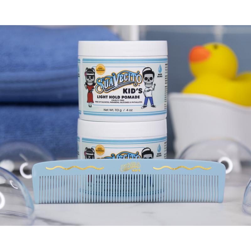 Bid farewell to the bedhead blues with the Suavecito Kid’s Styling Comb. Crafted with gentle, fine teeth, this Comb ensures fuss-free detangling, transforming even the knottiest mop top into a work of art. Built with playground-proof acetate, your little one will be ready for anything from sandbox scrambles to playful pillow fights. It’s the early bird’s ticket to mastering pompadours, conquering comb-overs and exploring a world of styling adventures.
