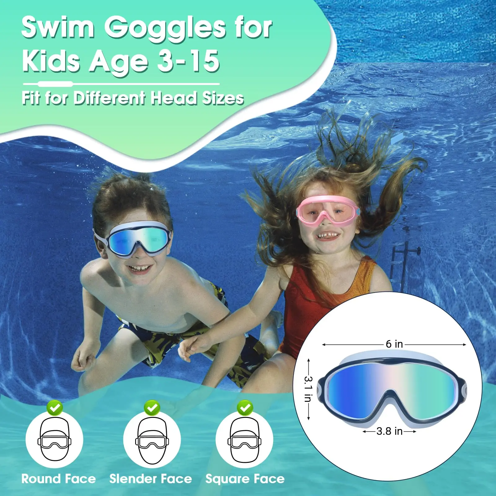 ·One-Piece Silicone Seal: Our kids' goggles feature a seamless silicone frame that naturally molds to different face shapes, creating a watertight seal to prevent leaks while evenly distributing pressure around the eyes.