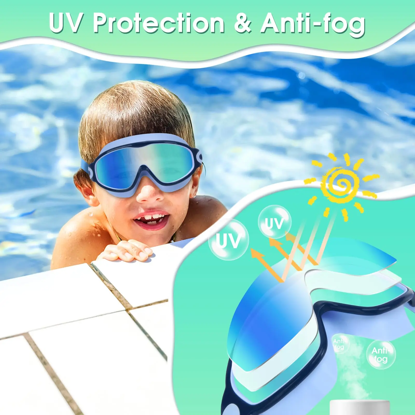 ·Advanced Anti-Fog & UV Protection: Each lens is coated with a robust anti-fog treatment, guaranteeing a consistently clear view for young swimmers. The UVA/UVB protective layer shields children’s eyes from harmful rays, whether they’re in an indoor pool or under bright sunlight.
