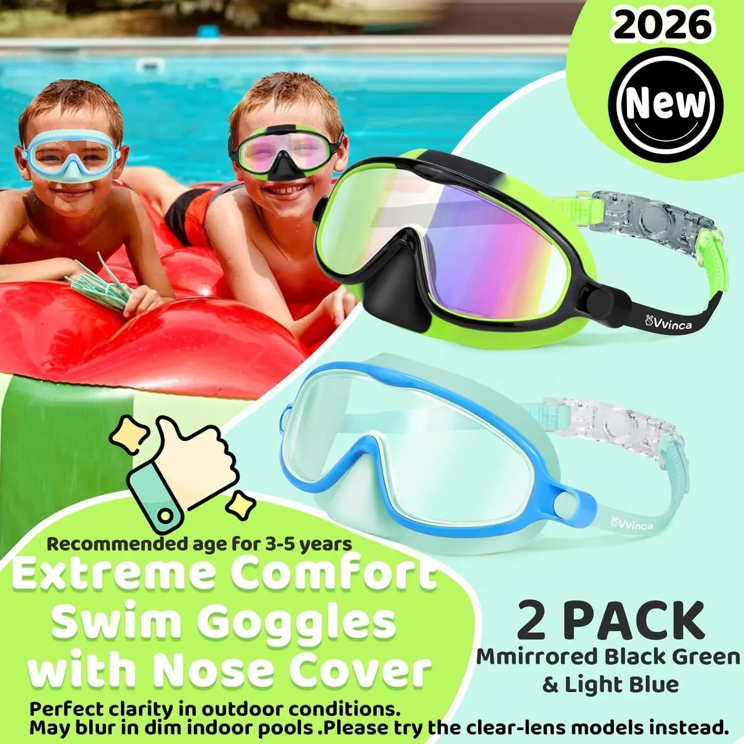 These Vvinca 2 Pcs Kids-Swim-Goggles with Nose Cover are designed to provide a comfortable and safe swimming experience for kids, helping them build confidence in the water.