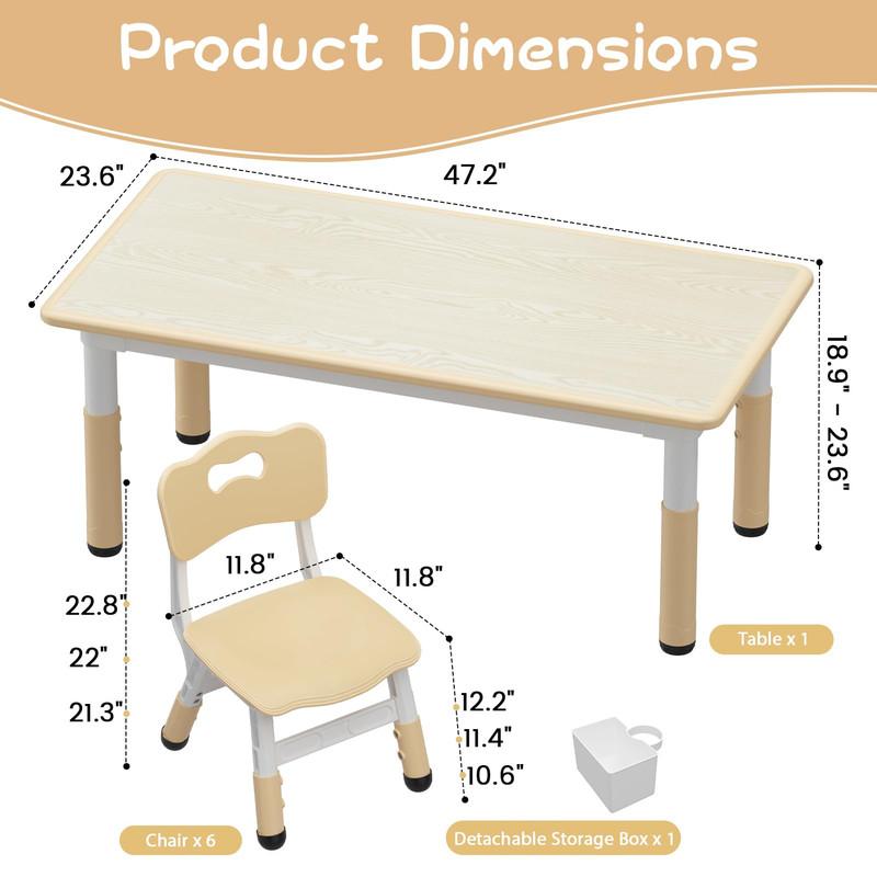 Kids Table and 6 Chair Set with Storage Box, Height Adjustable Toddler Table and Chairs Set for Ages 2-10, Graffiti Desktop, Non-Slip Legs, Children Activity Table for Daycare Classroom Home