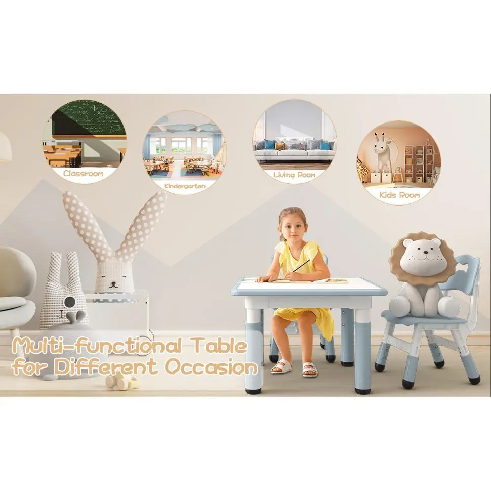 ·5.Versatile Table for Every Activity: Ideal as a study desk, dining table, art center, or playroom furniture, this height adjustable children table and chair set fits perfectly in any kid’s room, classroom, or play area