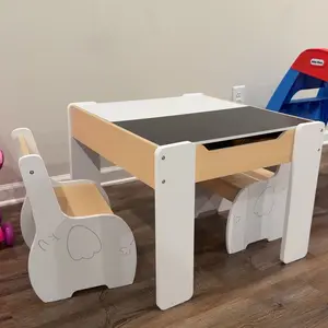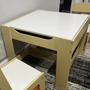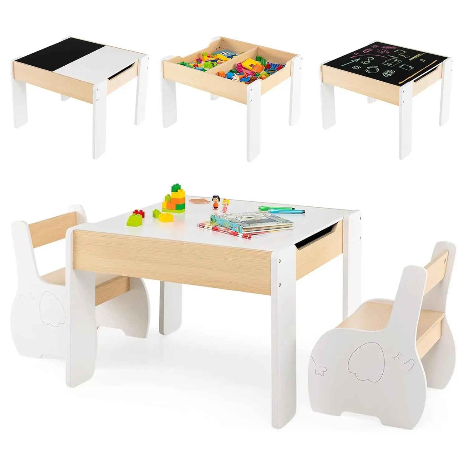 ·️【Convertible Activity Table】This Kids Table and Chair Set has two sides for kids to write, eat, draw and so on. One side of the tabletop is blackboard while the other one is whiteboard. Children can draw and write with chalk or gel pen. The 2-side table top both can be used for teaching.