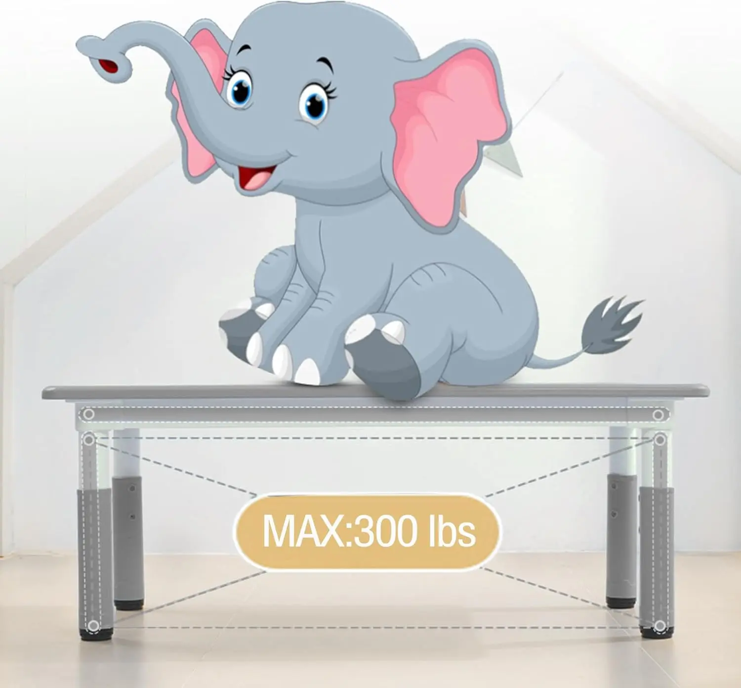 【Height Adjustable】:Both table and chair can adjust the height,The table to adjust from 18.9”-23.6”, 3 level for chairs to adjust from 10.6”-12.2”, and table weight capacity up to 300lbs,and the weight of the chair is 200LB.Both the table and chair are easy to assemble.Follow the instruction book having both printed directions and diagrams.