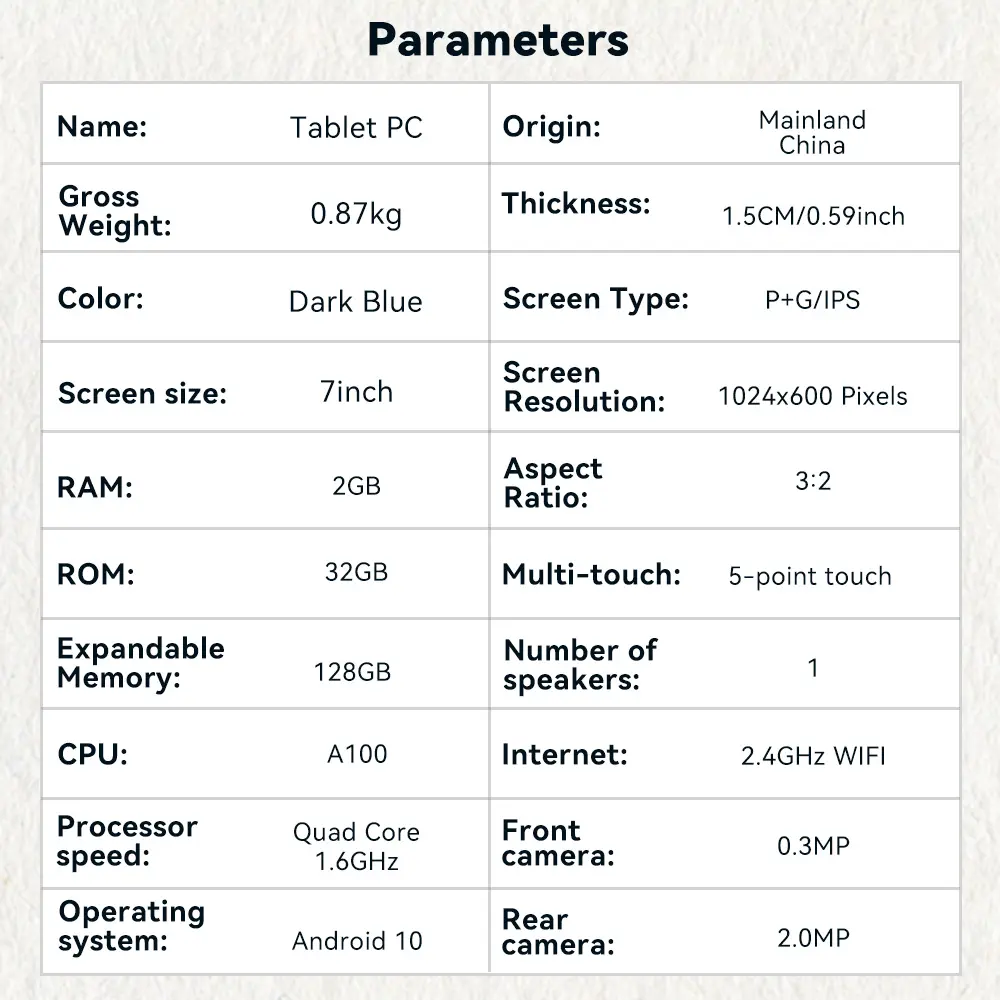 Nice size and affordable price , perfect for my toddler and it has a protection case with kick stand in the back, also its charger. It’s great for my child and a good starter until she knows how to work it real good and we will eventually upgrade.