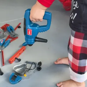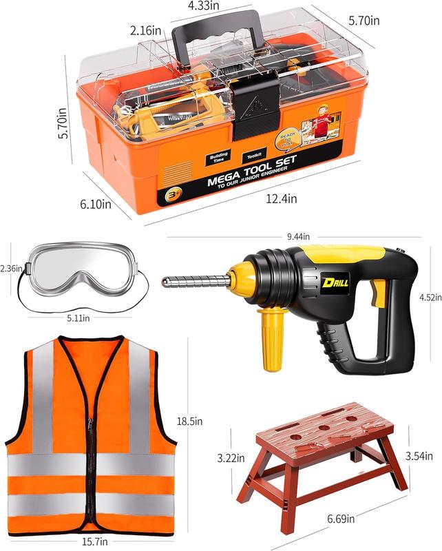 ·Includes battery-powered toy drill, hammer, screwdriver, blinkers, knife, toolbox, working overalls, wrench, and screws.