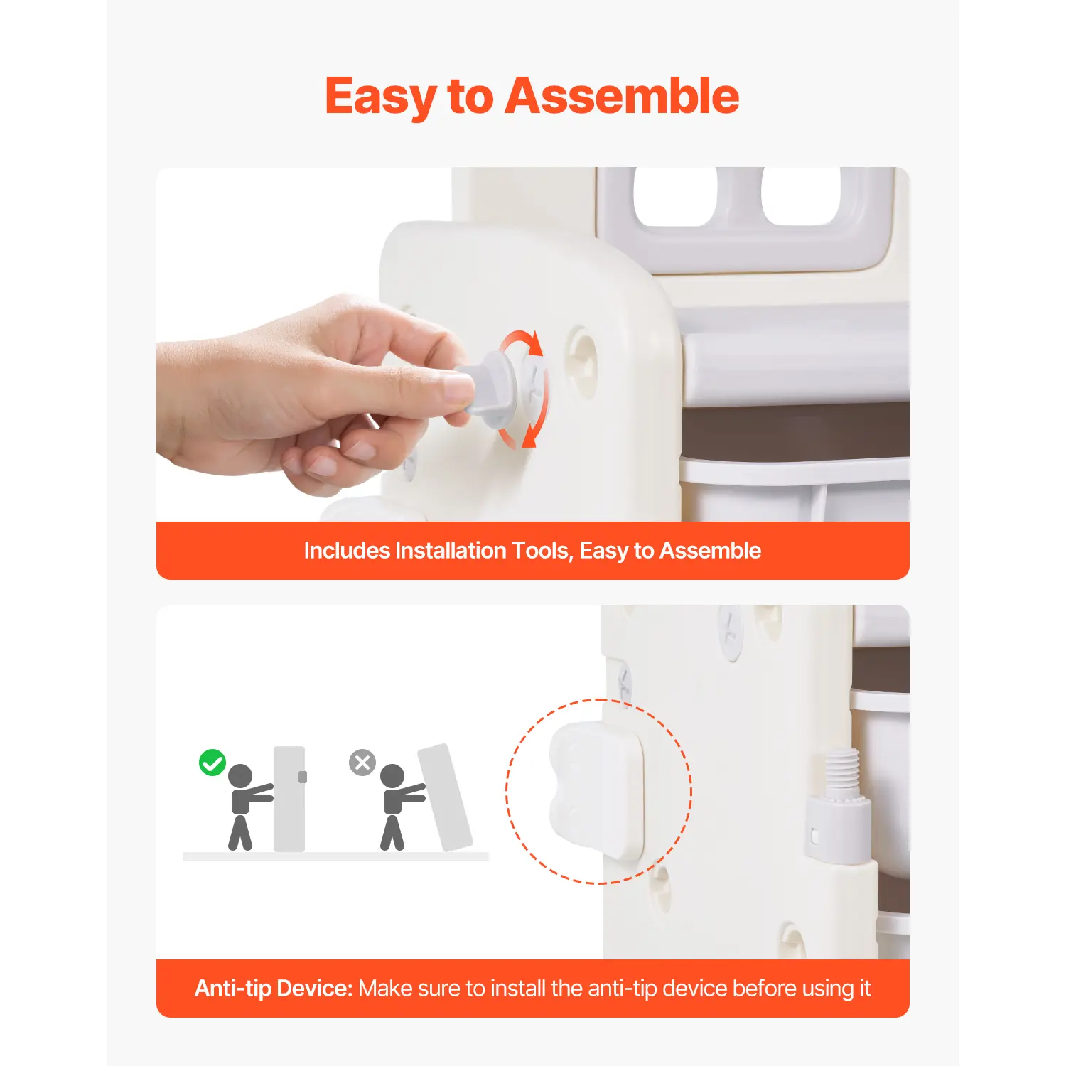 • Simple Setup & Anti-Tip Security: With a detailed assembly guide and all necessary parts, setting up is quick and easy. The toy storage and bookshelf includes an anti-tip feature, allowing you to securely attach it to the wall to avoid tipping. Please make sure to install the anti-tip device for added security, ensuring a secure environment for your child
