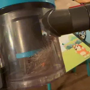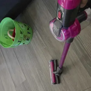 Interactive cleaning toy set that looks and functions like a real vacuum cleaner. It has strong suction power and simulates sound and light. Children can easily pick up dust and waste paper, creating a realistic game to interact with parents. Suitable for children aged 3 years and above