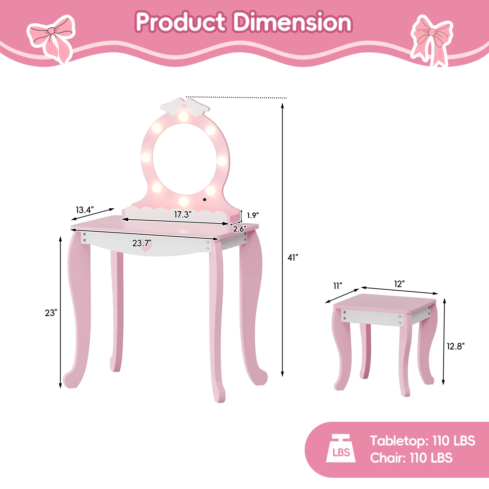 ·Safety First – We care about your child’s well-being. This toddler vanity meets ASTM F963-17 and CPSIA safety standards and is designed with kid-friendly materials and rounded corners to help keep little users safe during play.