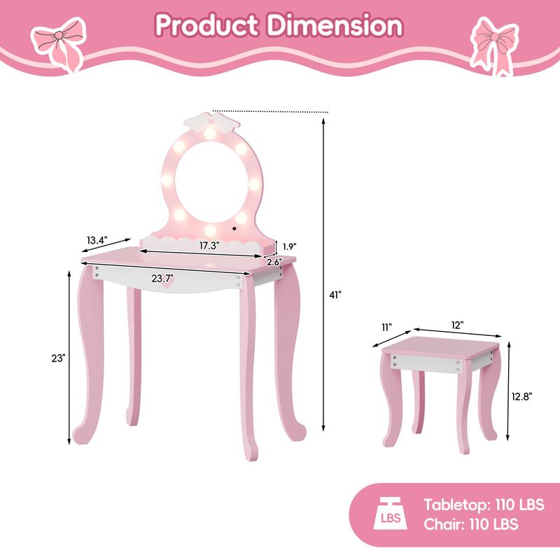 ·A Gift She'll Love – Every little girl dreams of her own special place to get ready. This little girl vanity set makes a perfect gift for birthdays, holidays, or just because. A beautiful addition to any bedroom or playroom!