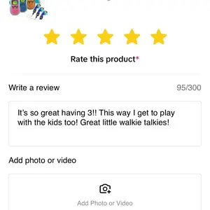 Great walkie talkies for kids! Easy to use, clear sound, and perfect for indoor and outdoor play. My kids love them