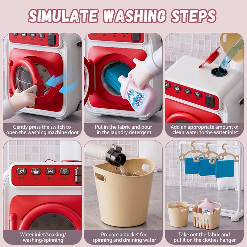 Bring home this fun & educational toy washing machine and watch your kids play, learn, and role-play just like the grown-ups!