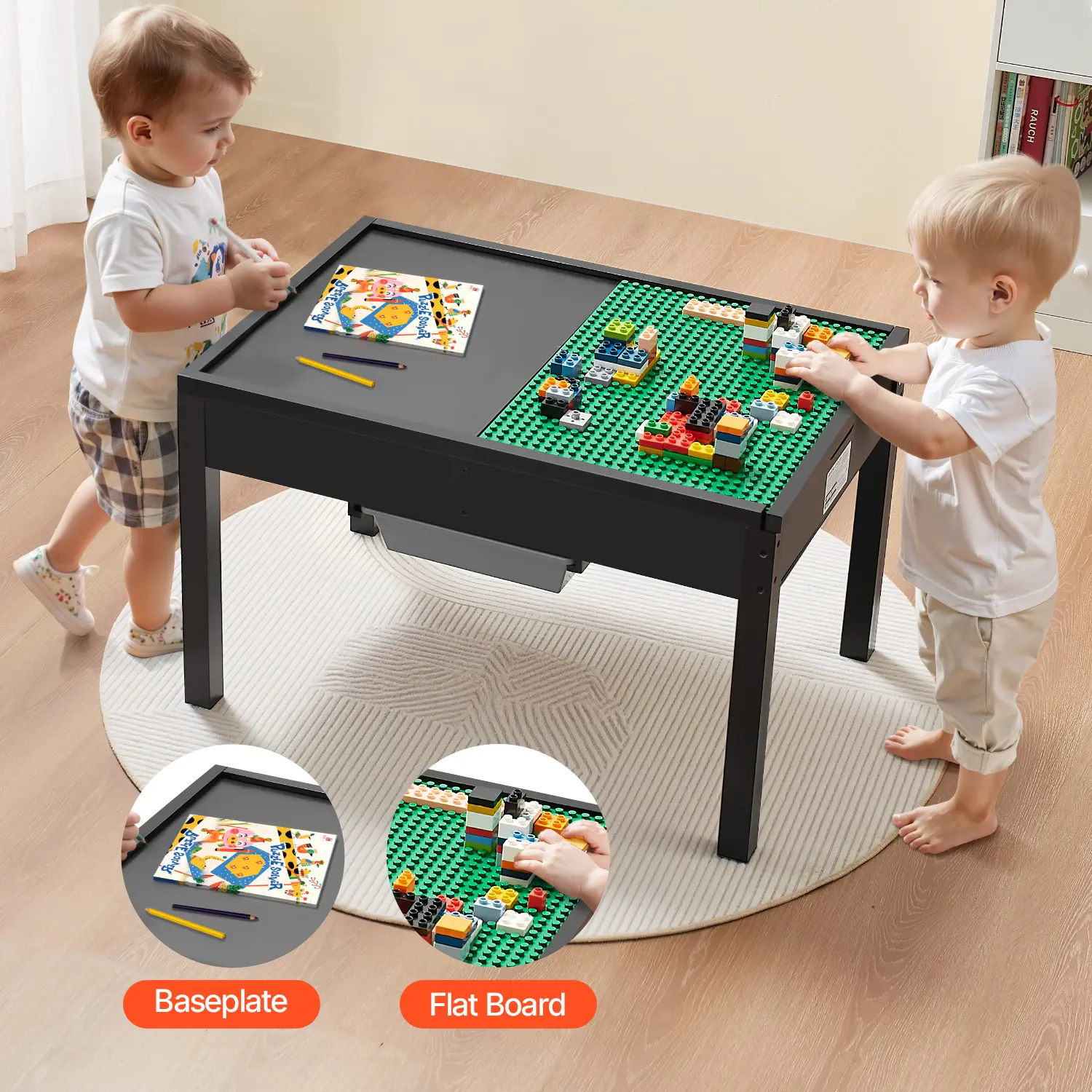 This play table boasts a reversible design, perfect for play, crafts, and meals! With a building block surface, it offers endless entertainment. Plus, built-in storage keeps the play area tidy and organized. Ideal for kids aged 3+ years, it's a versatile choice for boys and girls. Enjoy a black, stylish look that complements any room.