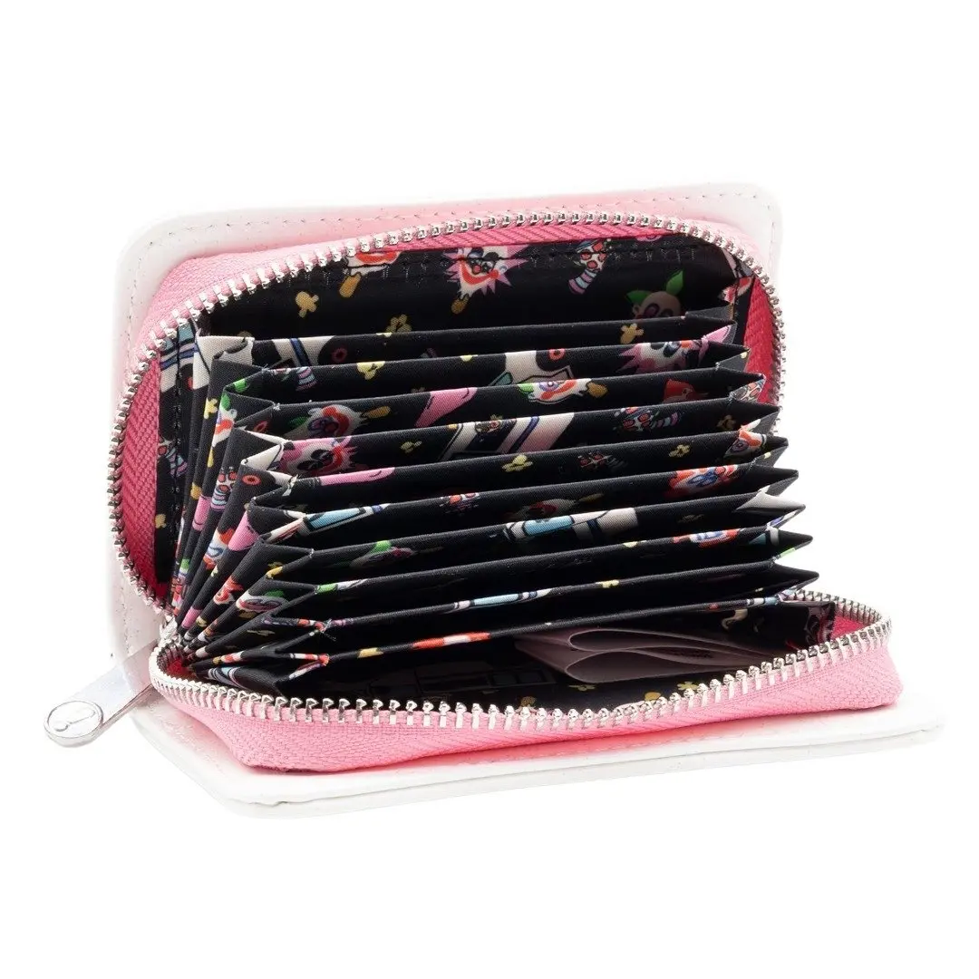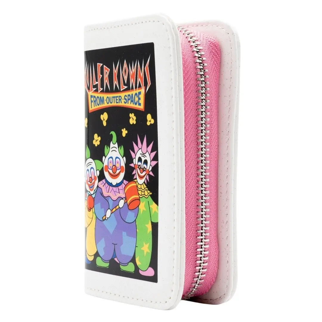 Travel back to the glory days of cult horror and clunky tapes with this Killer Klowns from Outer Space accordion wallet—designed as a perfect homage to the film’s original VHS packaging. From its printed padded vinyl cover featuring the outrageous clown trio, to its spine and back panel details, this wallet is dripping with nostalgia (and a touch of cosmic cotton candy menace).