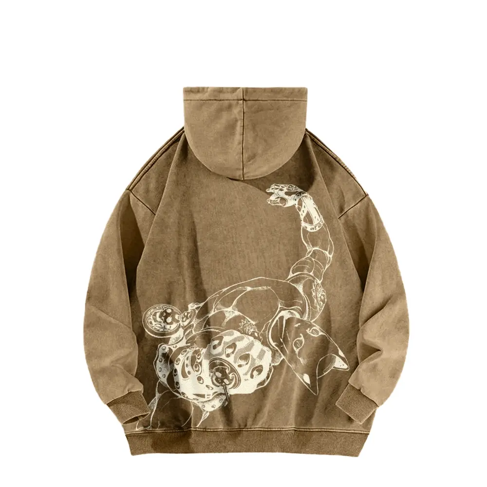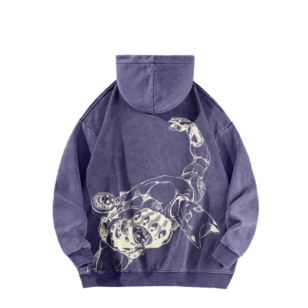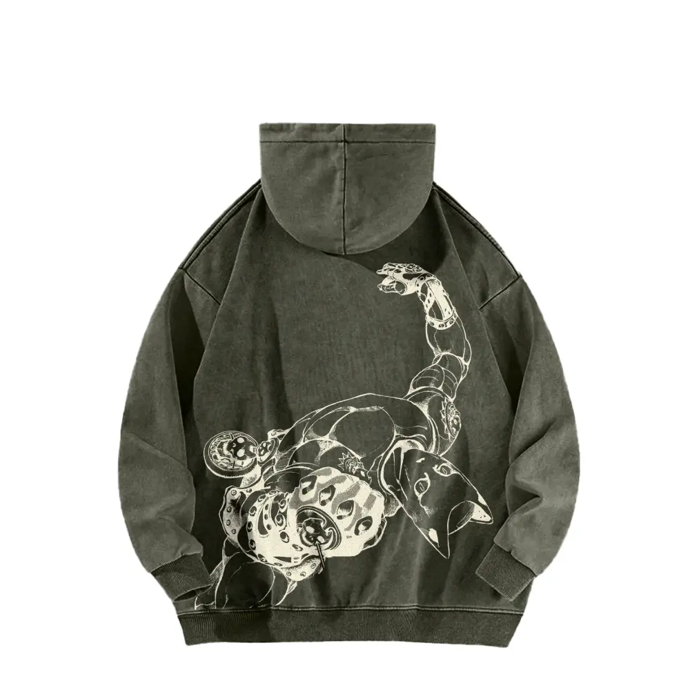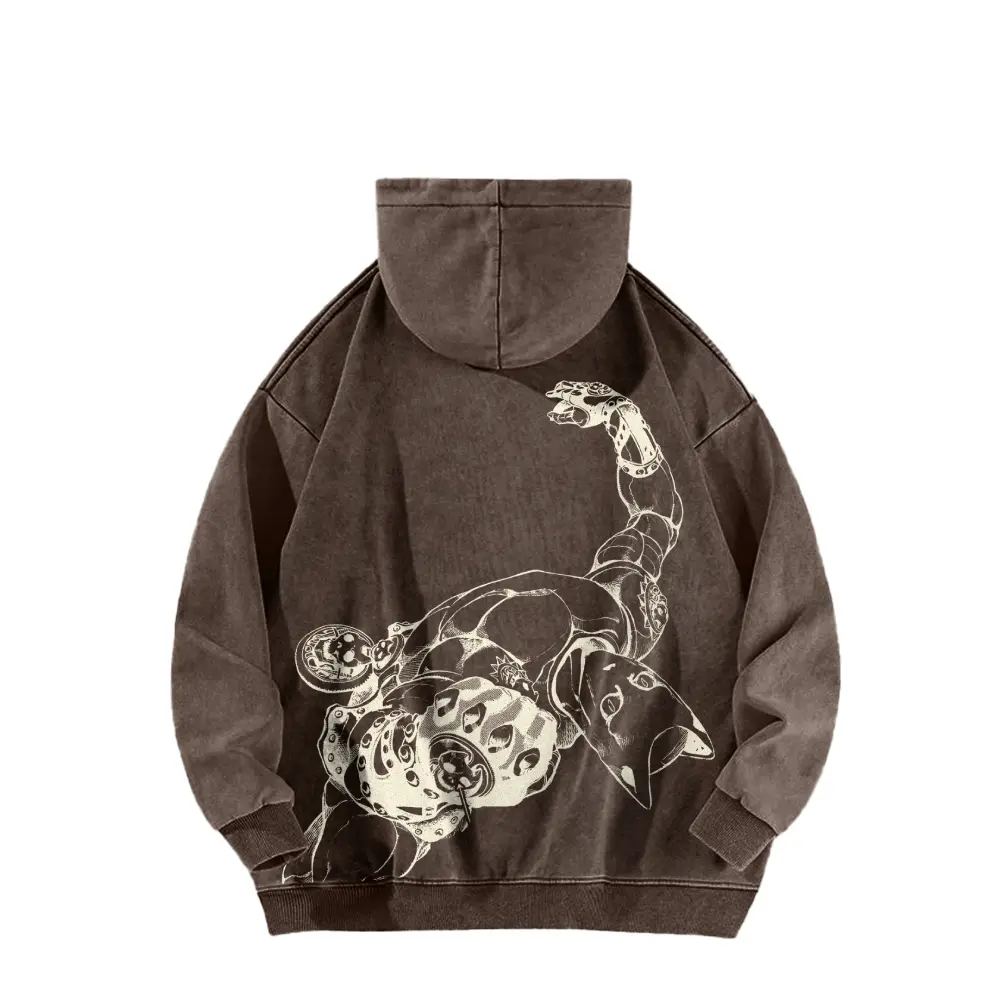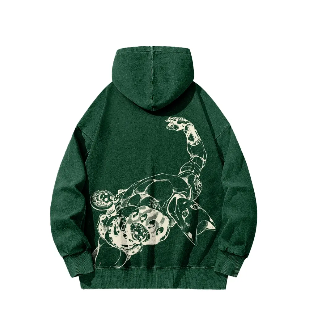 5. JoJo's Bizarre Adventure Killer Queen themed American-style washed hooded sweatshirt Long Sleeve Cotton Unisex Vintage Hoodie