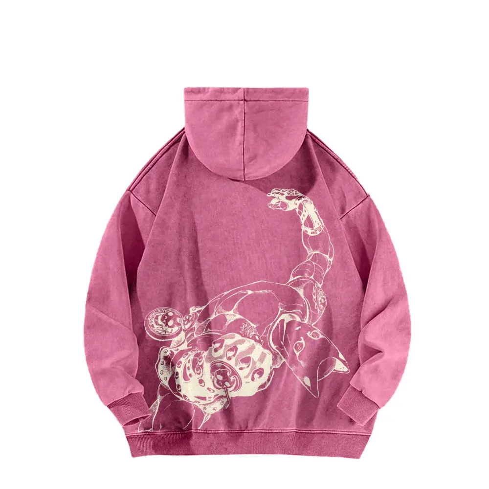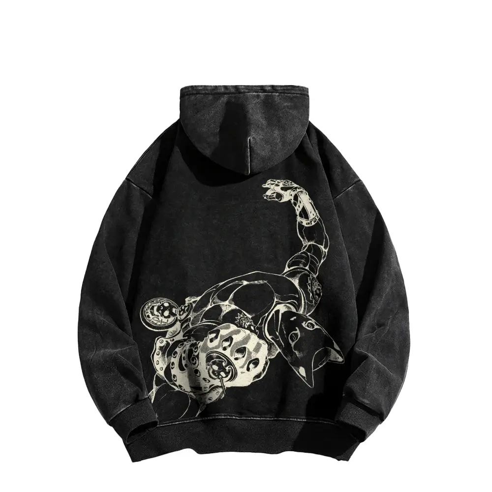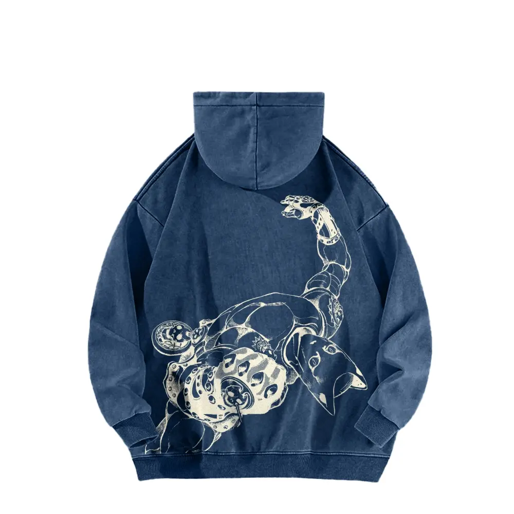 JoJo's Bizarre Adventure Killer Queen themed American-style washed hooded sweatshirt Long Sleeve Cotton Unisex Vintage Hoodie