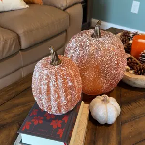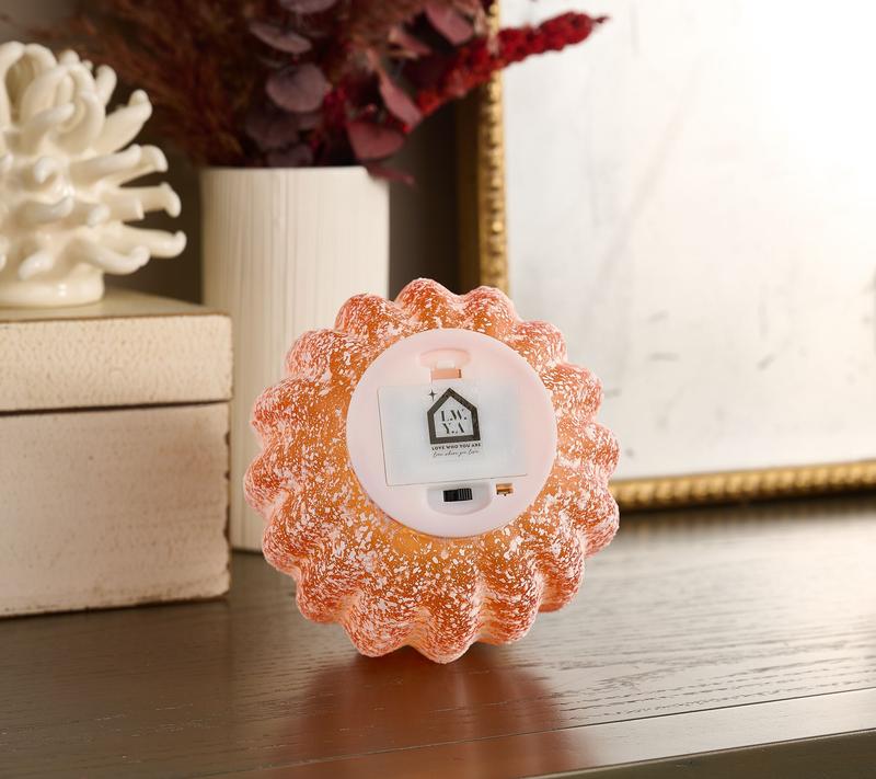 Autumn evenings feel a little warmer with the subtle glow of this frosted glass pumpkin, casting a gentle ambiance on your mantel, dining table, or entryway. The textured glass and muted hues lend a sophisticated touch to your seasonal arrangements, creating a welcoming vibe whether the lights are on or off. From Kim Gravel.