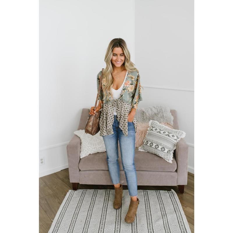I bought this kimono that I saw someone was wearing and loved it. I have not worn it yet but I did try it on with a jumper I plan on wearing it with. It is super cute comes down a little over the backside and ties. Cannot wait to wear it to work. It is soft and thin so it will not be to hot.