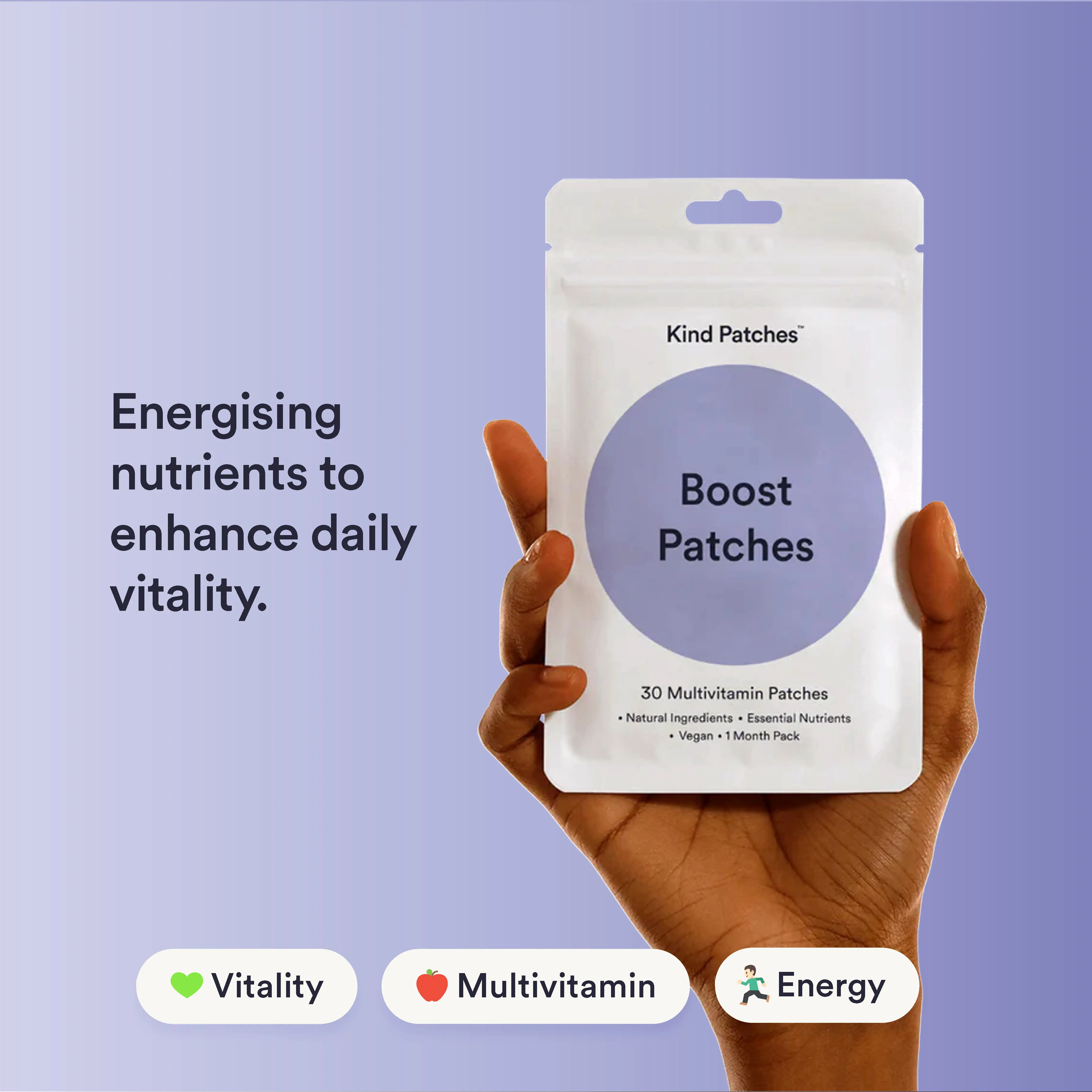 Boost Patches: Enhance your daily routine with our Boost Patches. Formulated to deliver essential vitamins directly through your skin. Enjoy a convenient and effective way to support your immune system, increase energy levels, and enhance overall health. The Boost Patches offer a hassle-free and reliable way to meet all your daily vitamin needs.