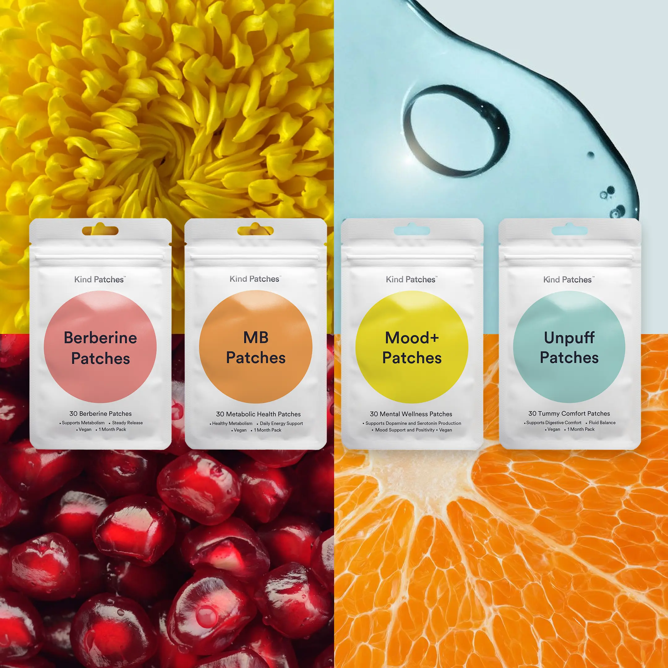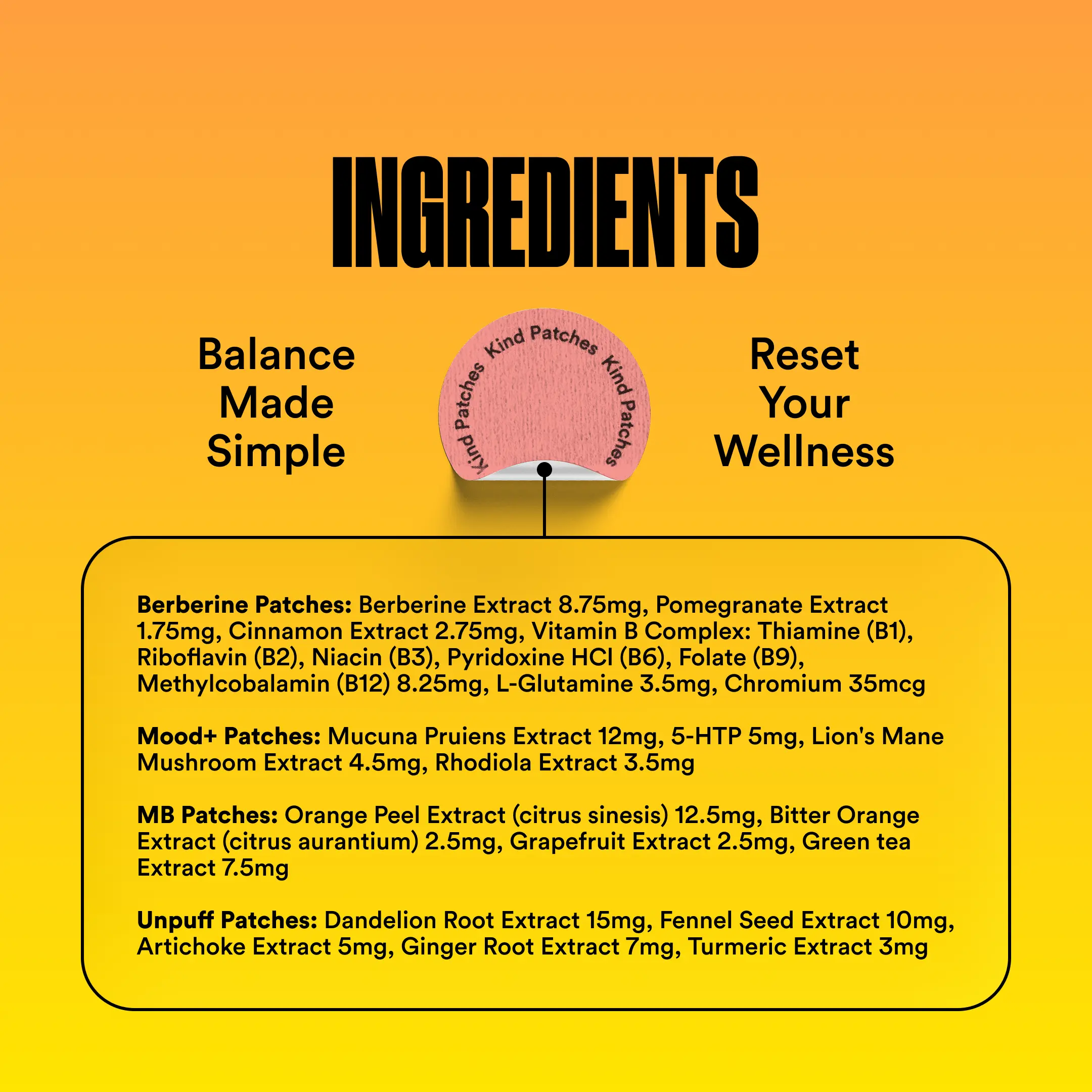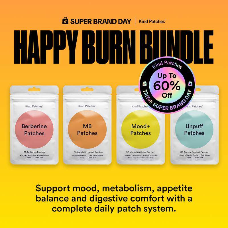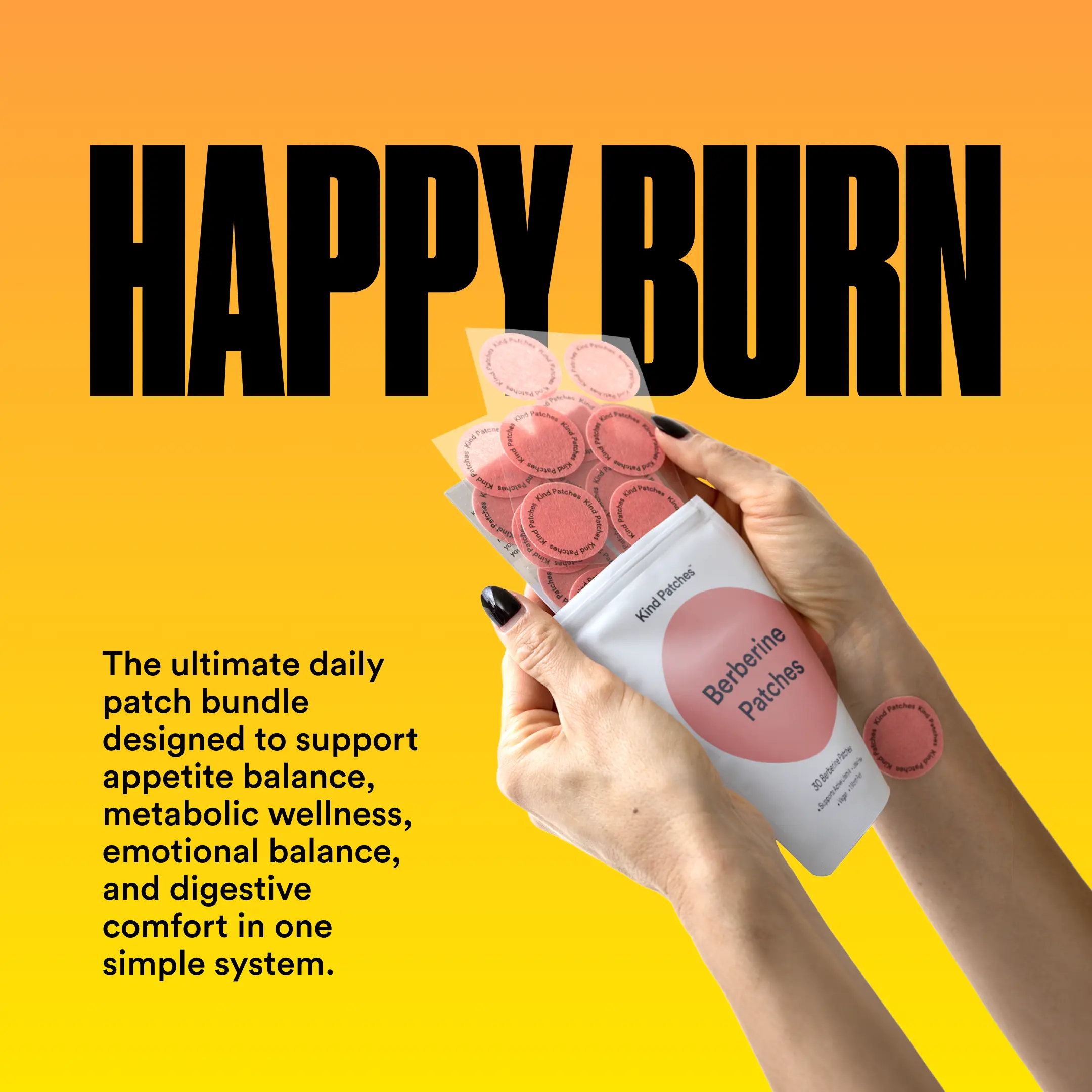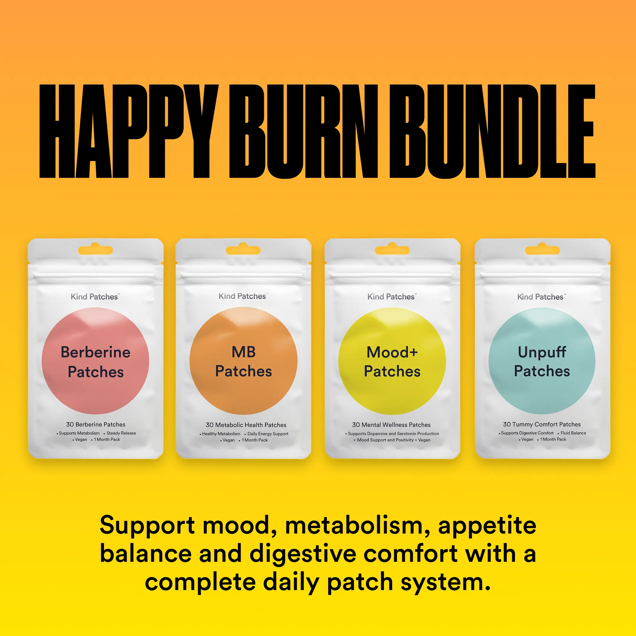 Happy Burn Bundle: This bundle offers comprehensive support for metabolic and mood health. It includes various patches for support and is made with natural, vegan ingredients.