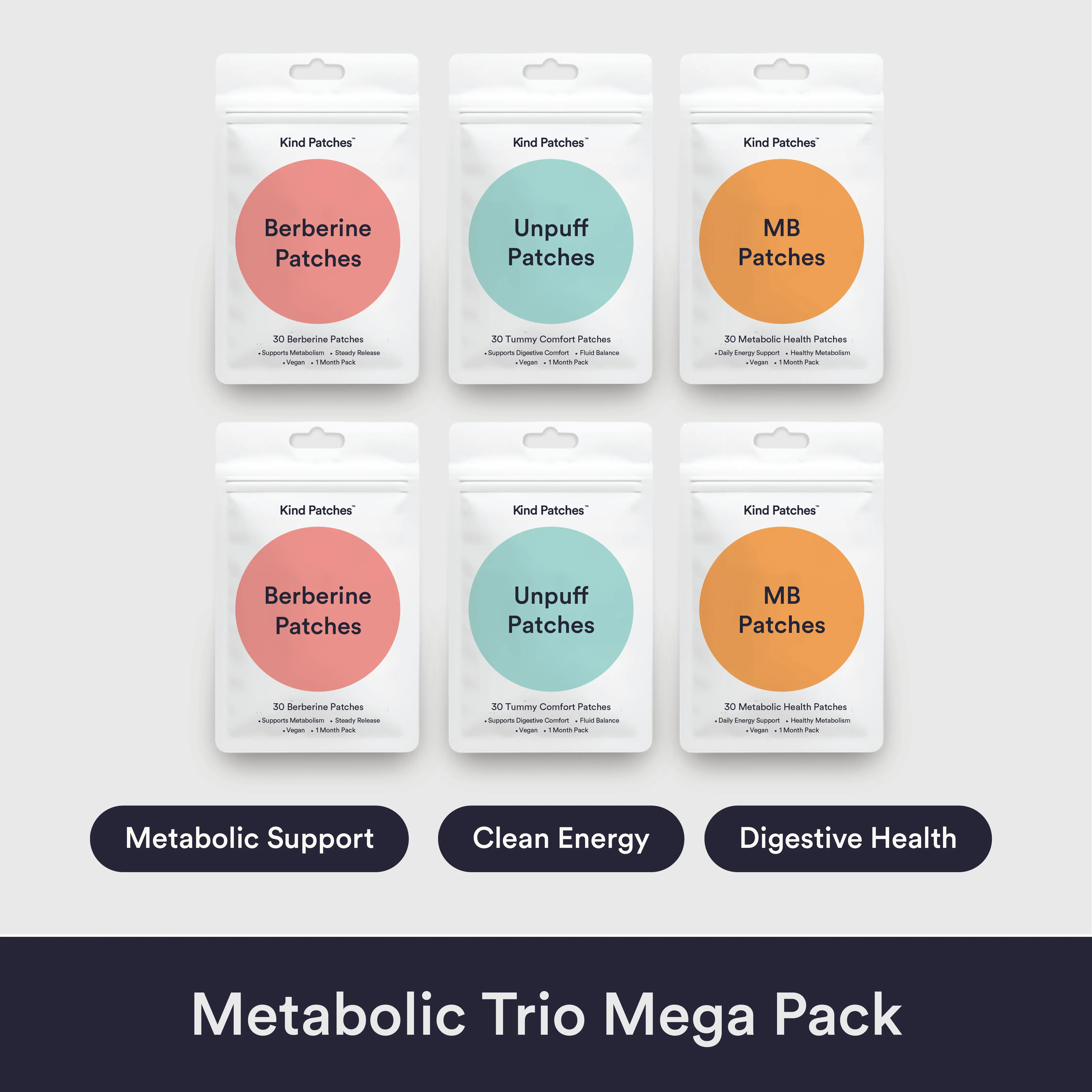 Ultimate Burn Bundle: This bundle includes six powerful patches: 2 MB Patches, 2 Berberine Patches, and 2 Unpuff Patches. Each patch is formulated with natural ingredients, promoting balanced gut health and digestive well-being. Perfect for those seeking metabolism wellness.