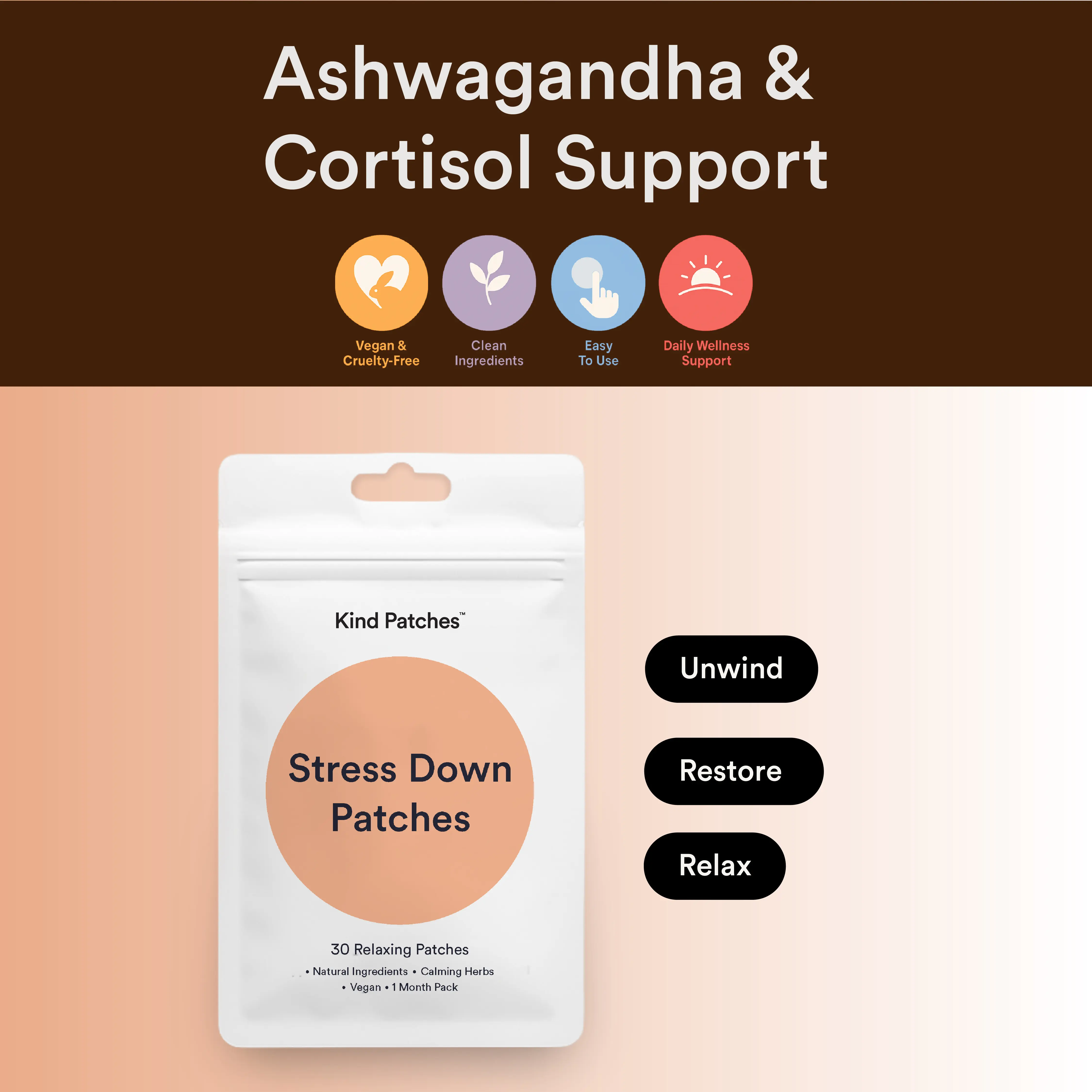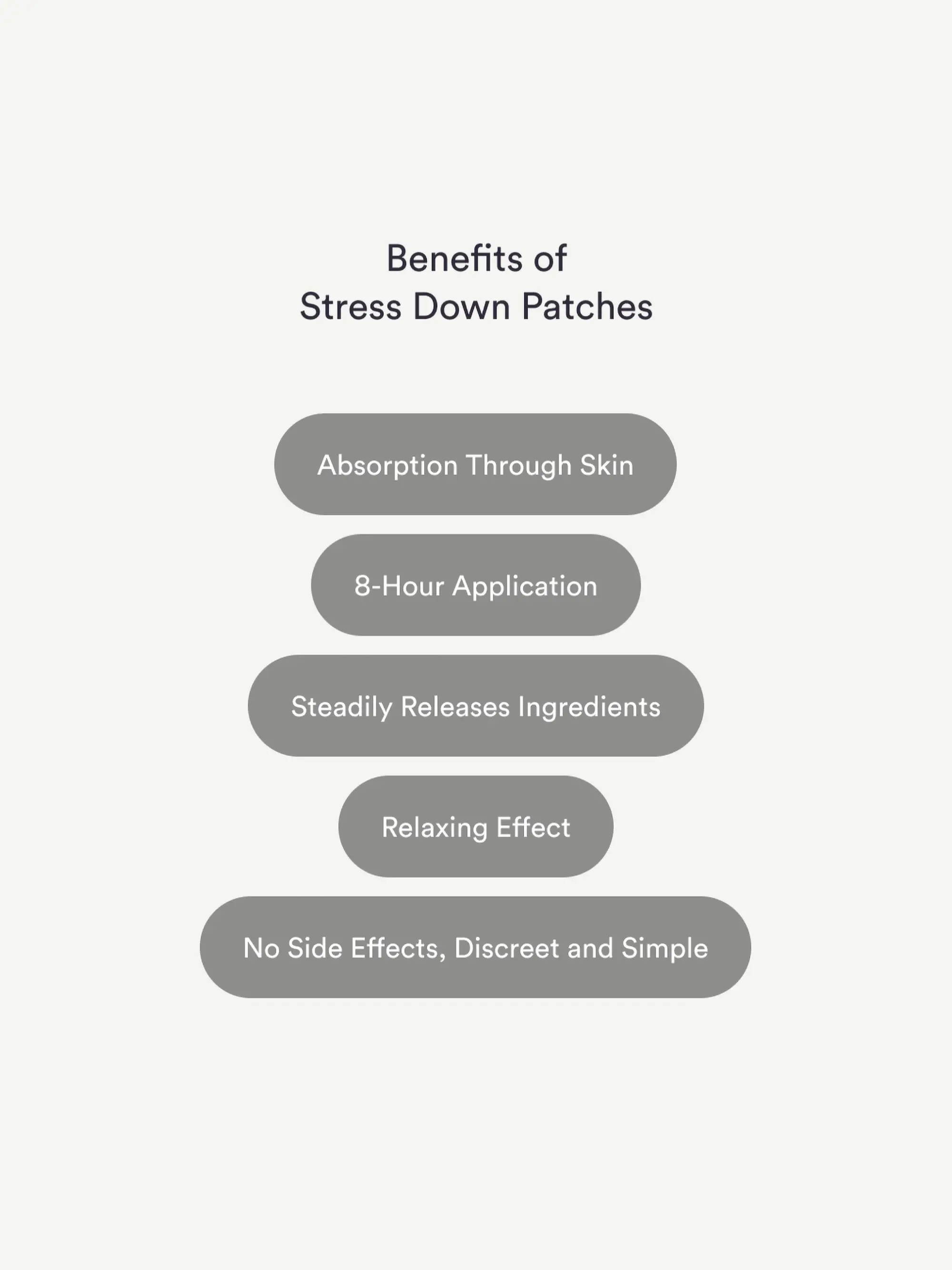 Stress Down Patches: Feeling overwhelmed by stress or anxiety? Try our Stress Down Patches—powered by a calming blend of Lychee Fruit, Magnolia Bark, Green Tea Extract, GABA, B vitamins, and Ashwagandha. These patches are designed to naturally soothe your mind, support emotional balance, and promote a steady sense of calm throughout the day.