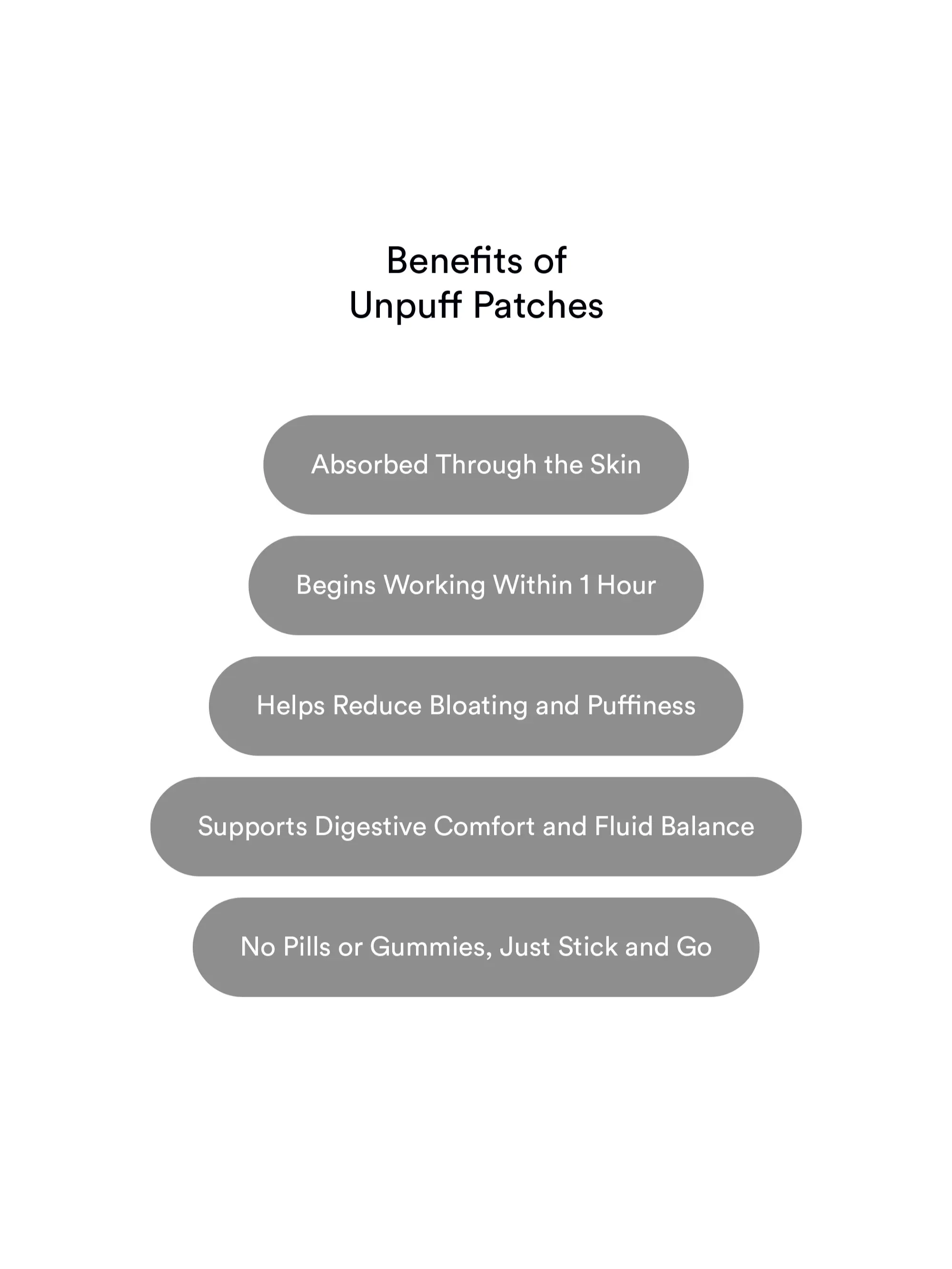 Unpuff Patches: Bloat support you can feel — from the outside in. It is a daily wellness patch designed to relieve bloating and puffiness using 5 plant-based ingredients.