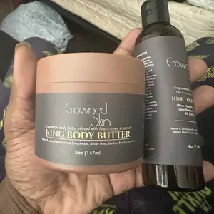 Embark on a regal journey with the King Cologned Body Butter and Body Oil Set. A luxurious blend of sandalwood, amber musk, leather, pine, and bourbon creates a fragrance that combines sophistication and allure. This formula enhances your natural charm, leaving a captivating scent wherever you go.