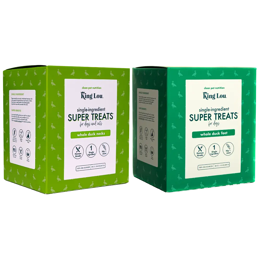 One single ingredient each: free-range, whole duck feet and duck necks