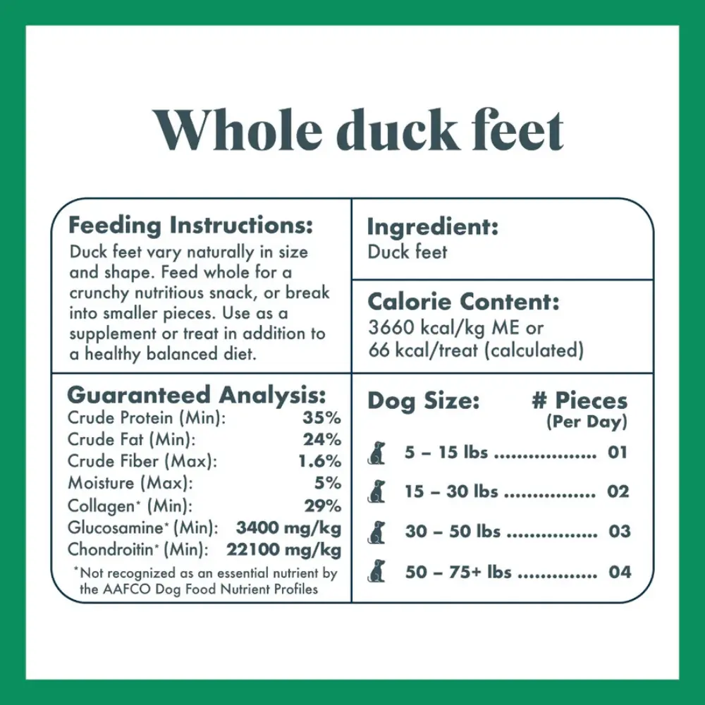 ·Whole Duck Feet – Nature’s toothbrush, rich in glucosamine & chondroitin for joint and dental health