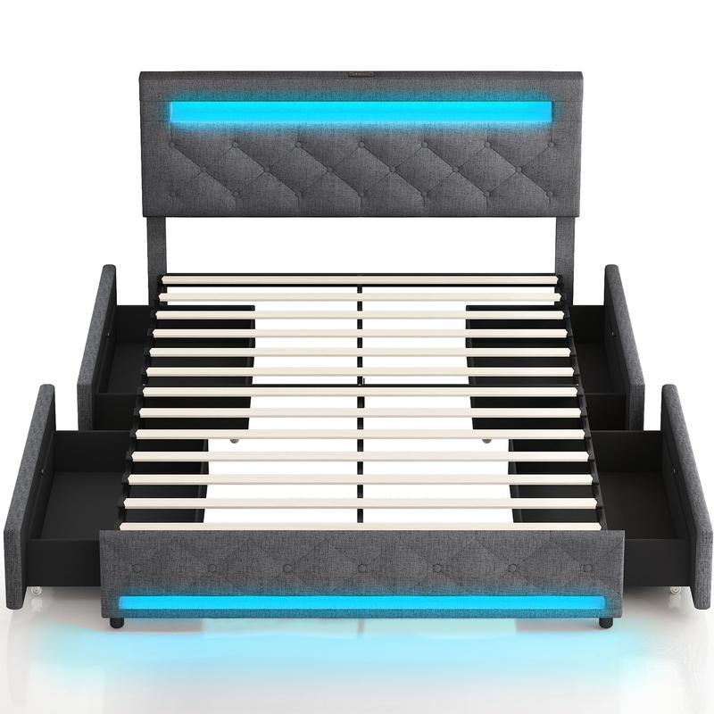 4. Sturdy and Stable: LED QUEEN bed frame with headboard is made of steel frame and supported by 12 widened solid wood, and QUEEN bed frame with storage can support up to 880 lbs. Drawers with silent wheels and hardware guides and mattresses with non-slip rubber feet make bed frame QUEEN platform led is ensured not easy to move, which is created a noise-free sleeping environment for you and your family.