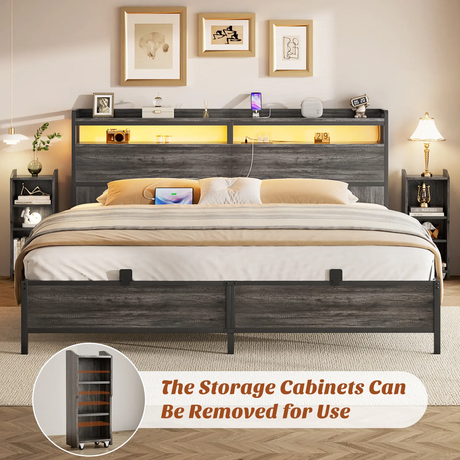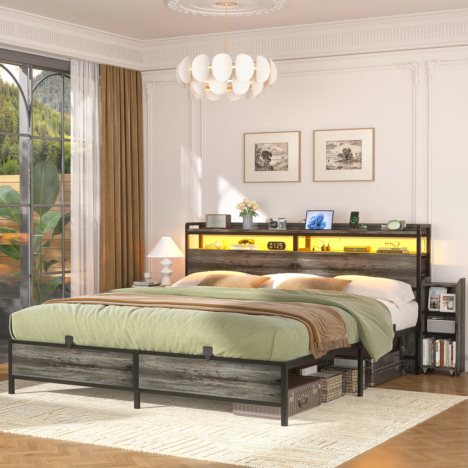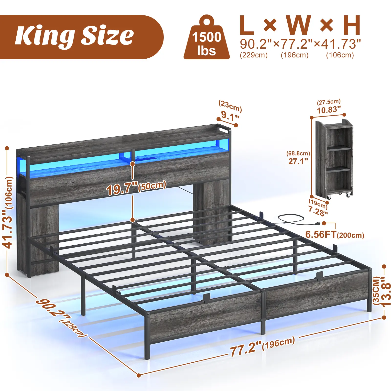 ·King Size Bed with Charging Station: The king bed frame features 3 AC outlets and 2 USB ports, offering charging for your tablet, phone, or other gadgets. The bed frame with a charging station can keep your devices fully charged state and within easy reach.