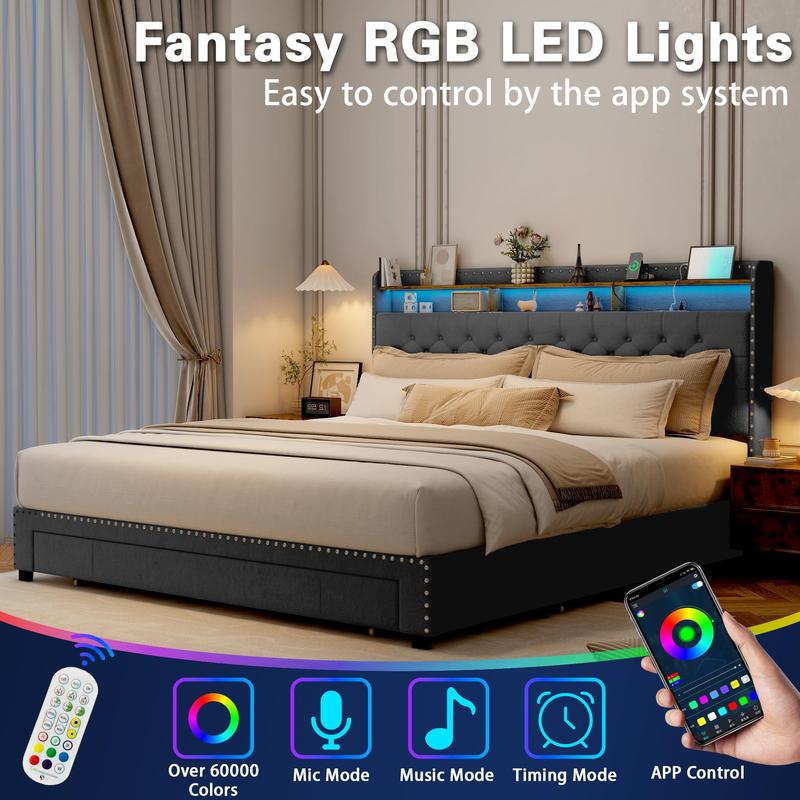 Β·MULTI-FUNCTION RGB LED LIGHT: Your night is made more relaxed by the headboard's RGB LED lighting. The controller fitted on this this bedframe allows you to simply change the light's brightness, a variety of color options, multiple scene options and speed adjustment. The APP has more features related to timed mode, music, and microphone. The soft light is especially great for waking up, reading or relaxing at night. Enjoy your life.