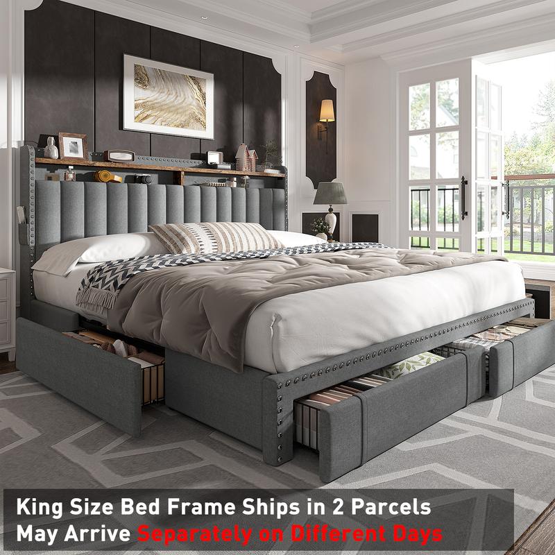 ·4-Drawer King Size Bed Frame Ships in 2 Parcels – May Arrive Separately