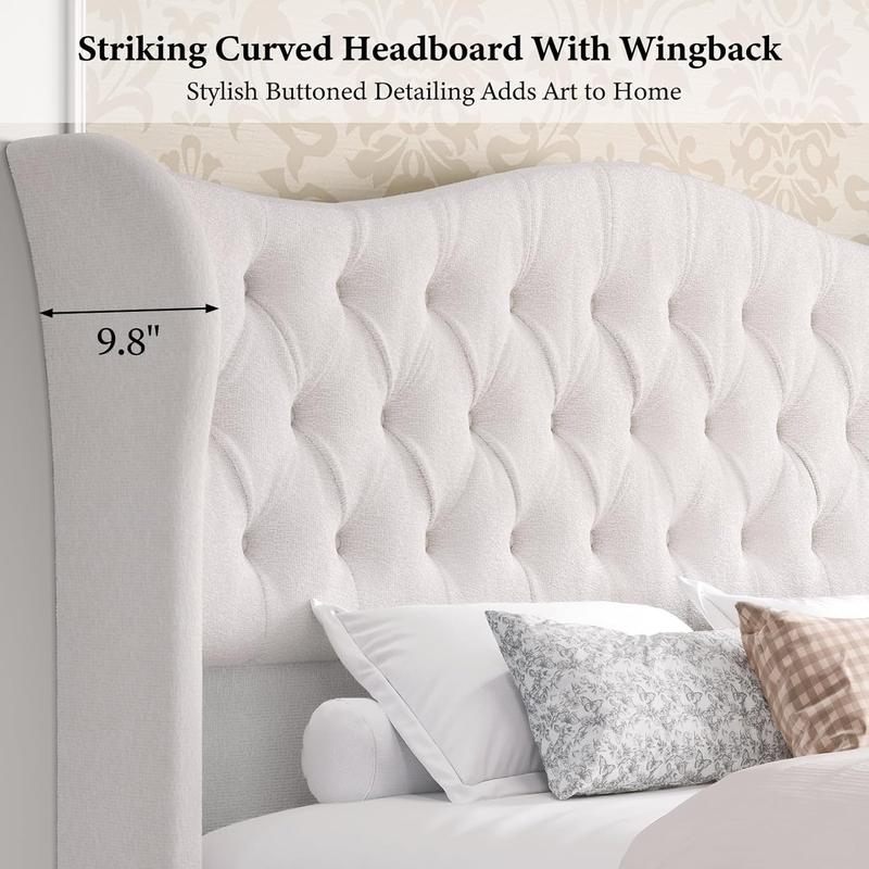 ·Cozy & Soft Chenille Upholstery: Upholstered bed frame king Wrapped in premium chenille fabric with a smooth, soft-to-the-touch feel that’s both elegant and skin-friendly. Generous foam padding provides excellent support and comfort while you relax or read in bed king. The sturdy wingback headboard adds extra stability and style, making your king platform bed and headboard not just beautiful, but built to last. After a long day, sink into this cozy retreat and enjoy pure relaxation