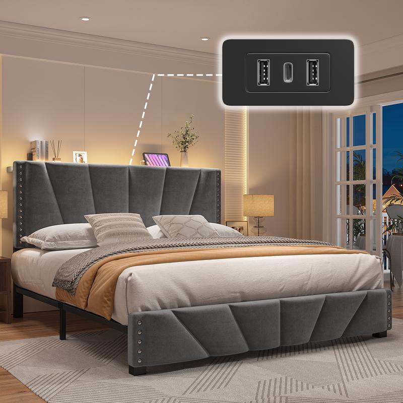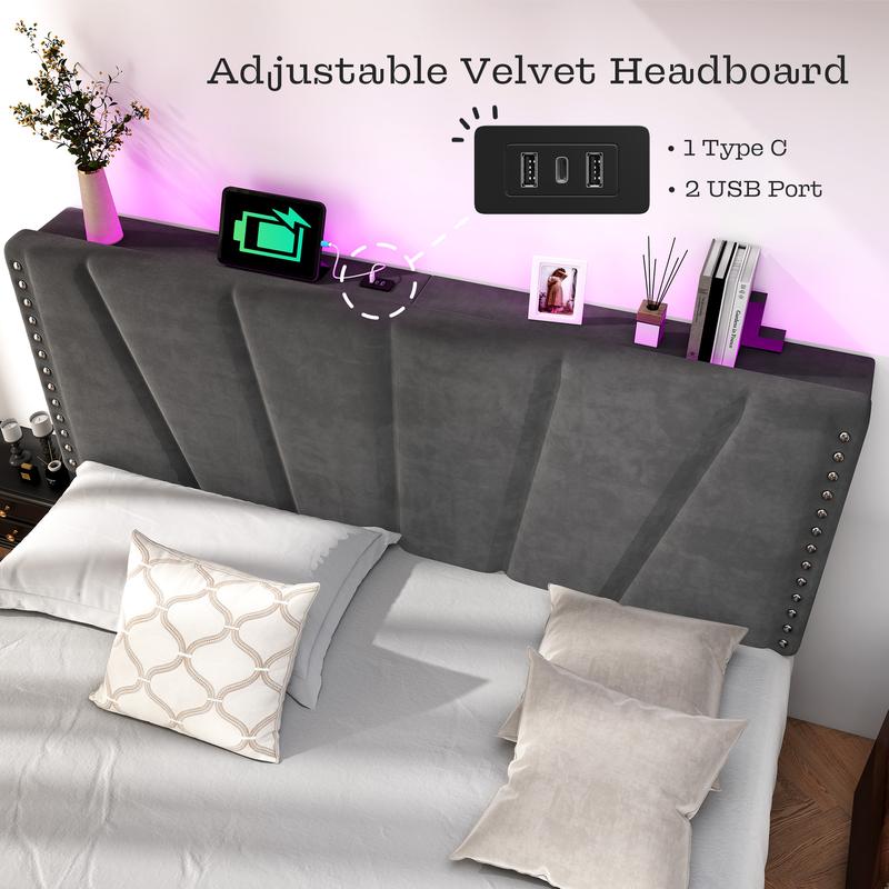 Modern LED Bed Frame with Adjustable Headboard & Smart Storage – Ultimate Comfort & Style