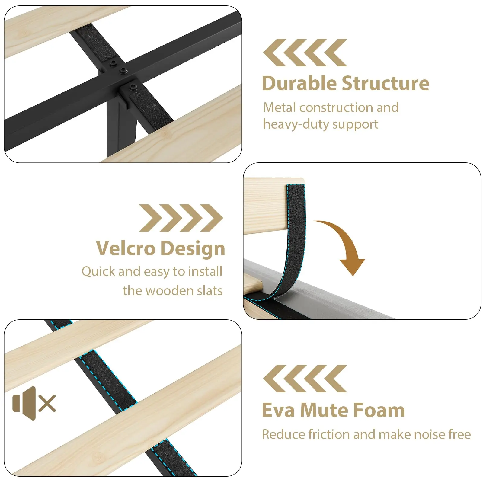 ·Plush Velvet for Ultimate Comfort – Wrapped in soft, luxurious velvet and padded with noise-reducing EVA foam, this king-size bed frame keeps things quiet and cozy. No squeaks, no creaks—just you sinking into dreamy, peaceful sleep every night.