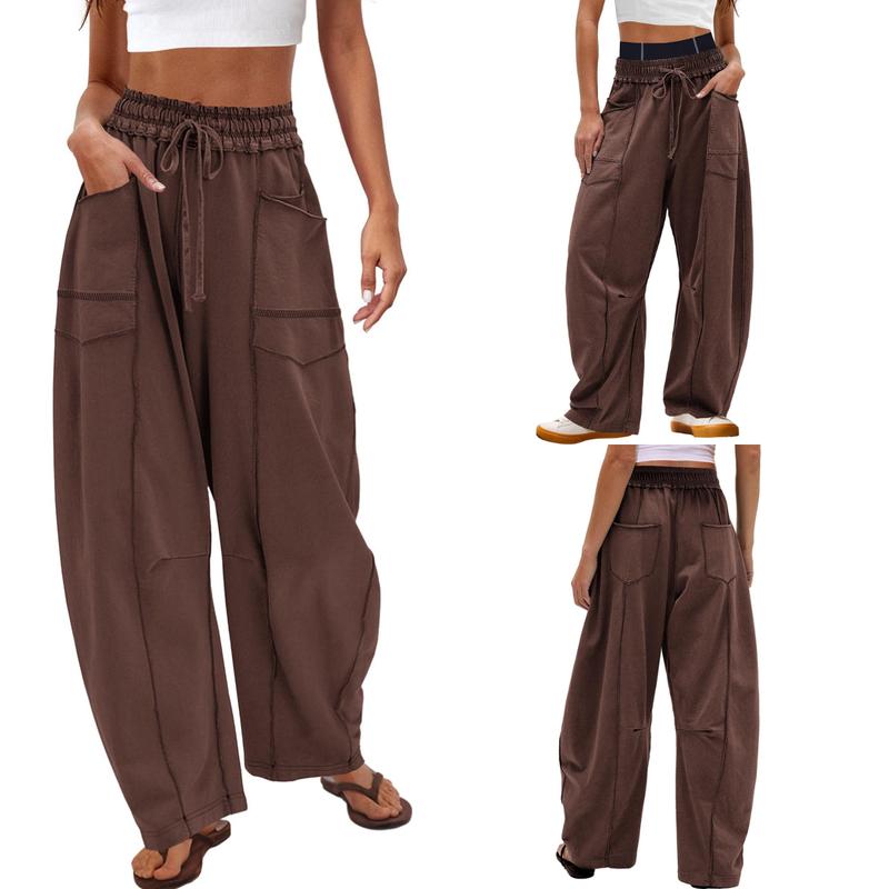 Feature:: These wide-leg sweatpants are designed with a comfortable elastic smocked waist and an adjustable drawcord for a perfect fit. They feature spacious patch pockets and are finished with raw-cut exposed seams for a functional, edgy look