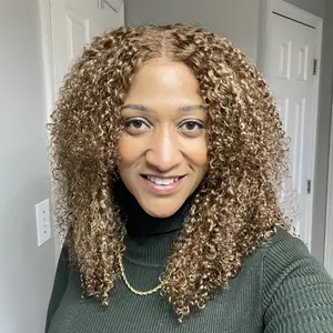 This unit comes in a nice package with some free goodies. The curl pattern is nice the color is nice if you’re looking for a more chocolate with highlights but seems lighter in pics. Also it doesn’t smell like other wigs it kind of smells like it does after being shampooed. I haven’t worn yet this review is straight from the box.