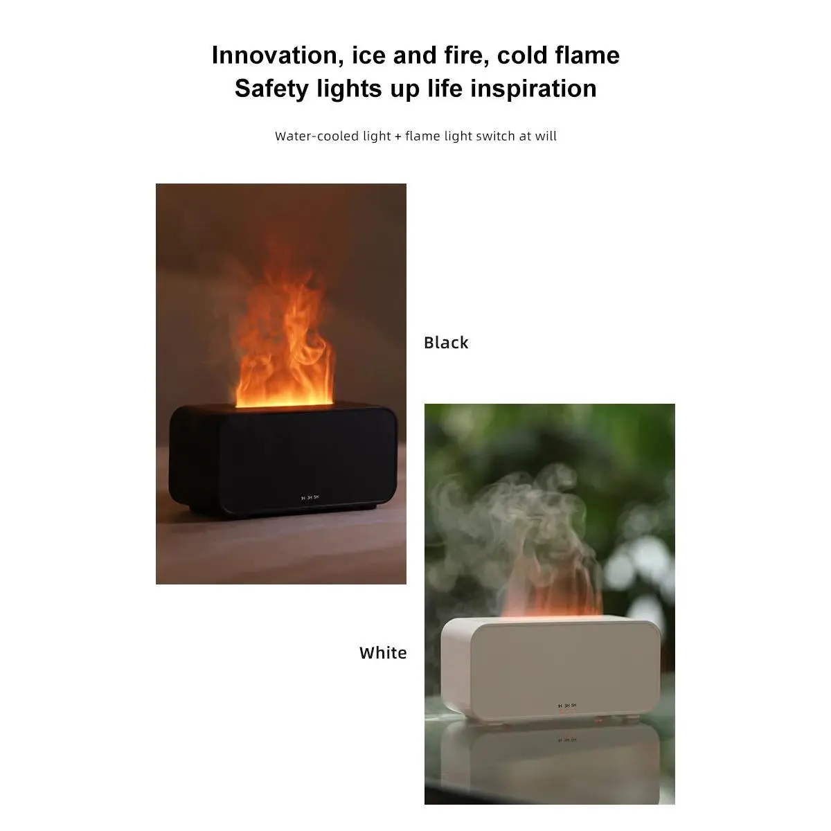 Enjoy customizable timing with options for 1, 3, or 5 hours. The diffuser also features a fogging function paired with a flame-style ambient light, adding a unique ambiance. Users can choose from seven LED lighting modes or select a fixed color. Safety is prioritized with a water shortage protection chip that automatically turns off the unit when water levels drop.