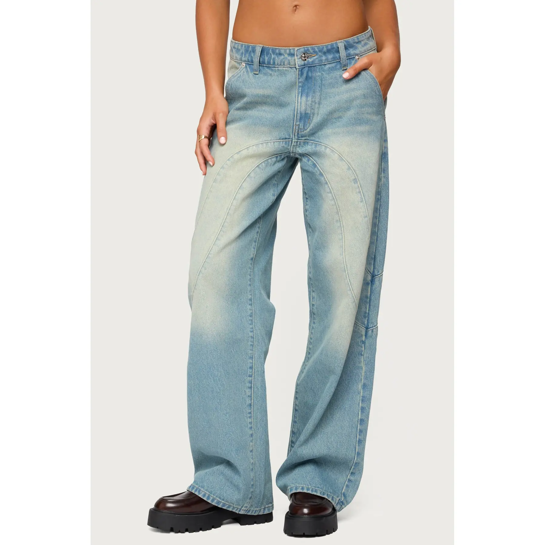 Kiria Stitched Low Rise Baggy Jeans