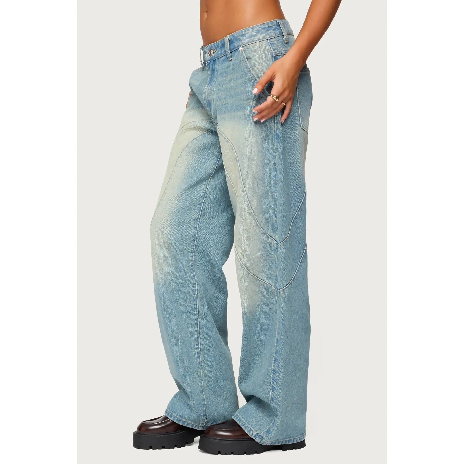 5. Kiria Stitched Low Rise Baggy Jeans