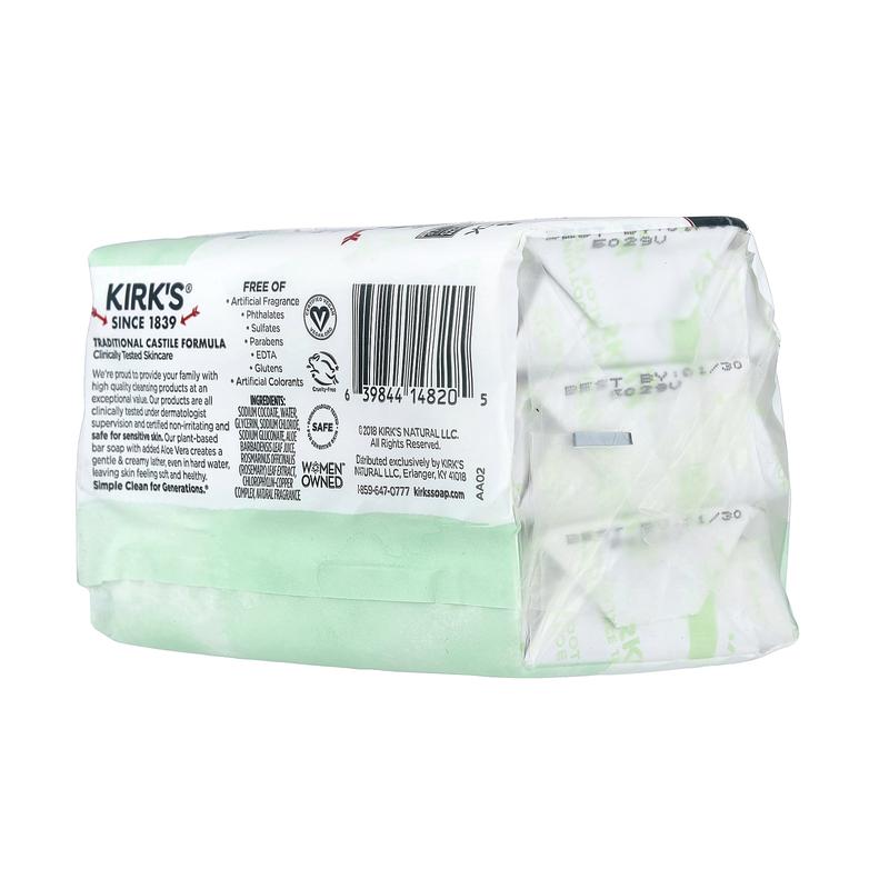 Kirk's 100% Premium Coconut Oil Castile Bar Soap, Soothing Aloe Vera, 3 Bars, 4 oz (113 g) Each