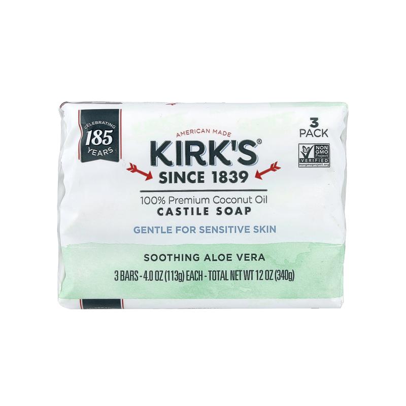 5. Kirk's 100% Premium Coconut Oil Castile Bar Soap, Soothing Aloe Vera, 3 Bars, 4 oz (113 g) Each