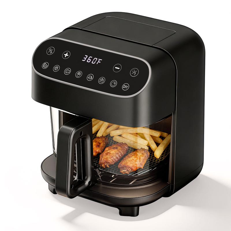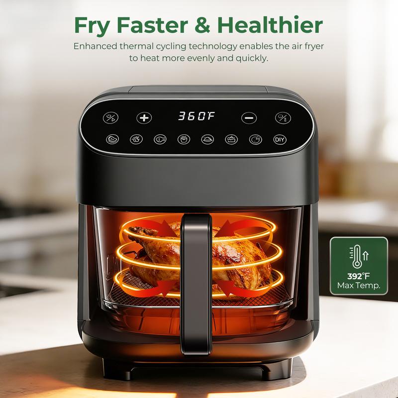 ·5-Qt Capacity for Family Meals -- This glass air fryer with window perfectly fits a whole 3 lb chicken, 1.5 lb fries, or 2.2 lb wings in one batch, great for weeknight dinners and entertaining, with fewer cooking cycles and less cleanup