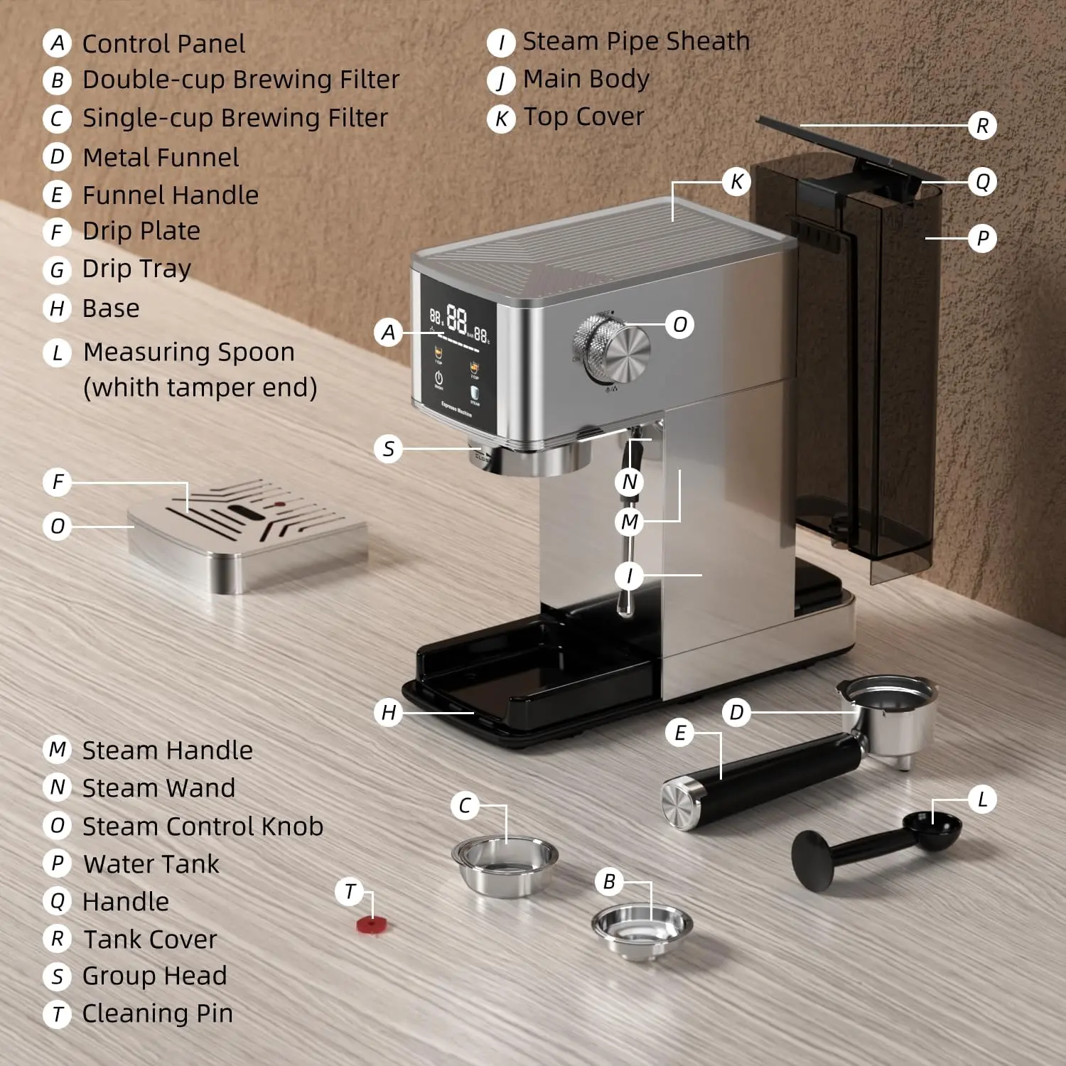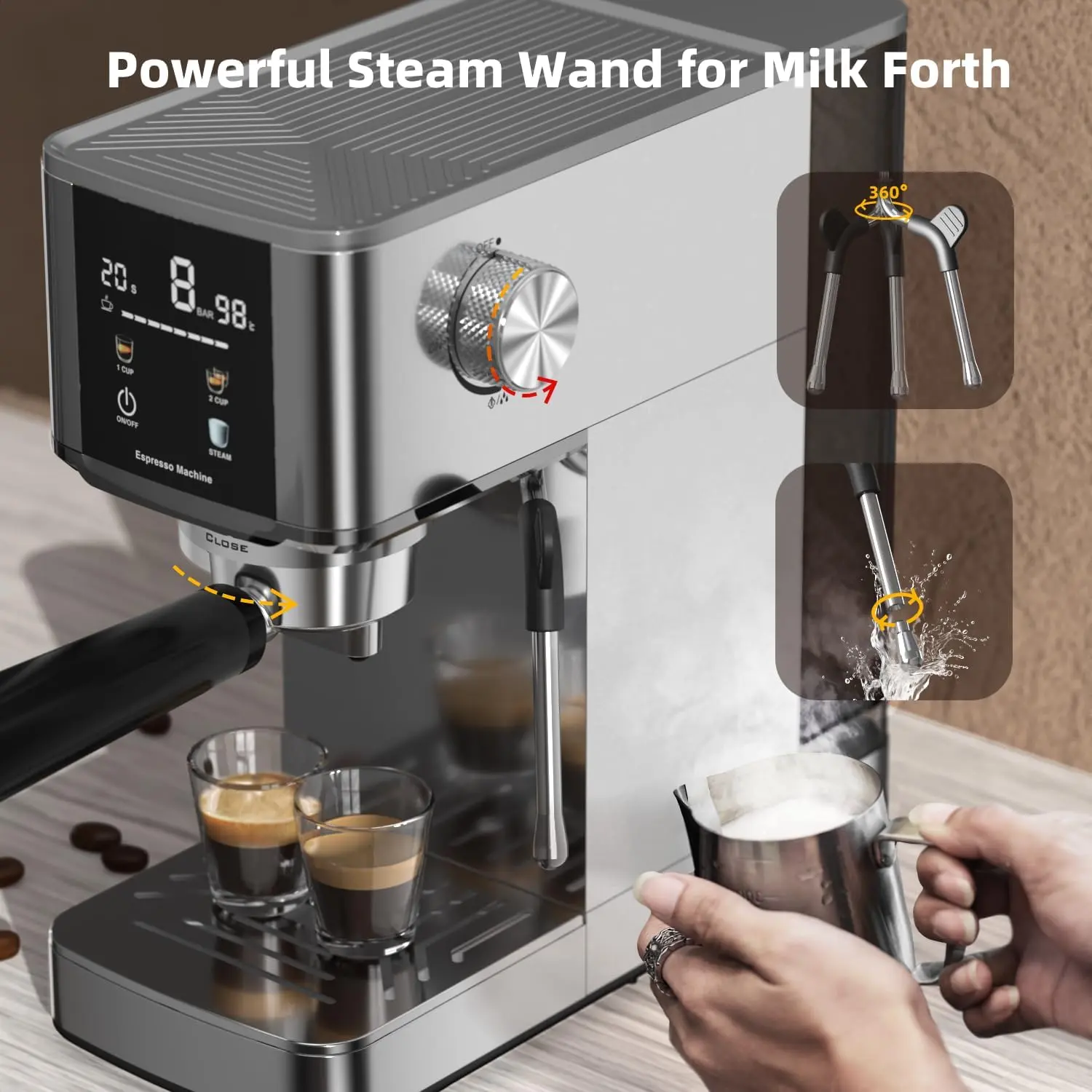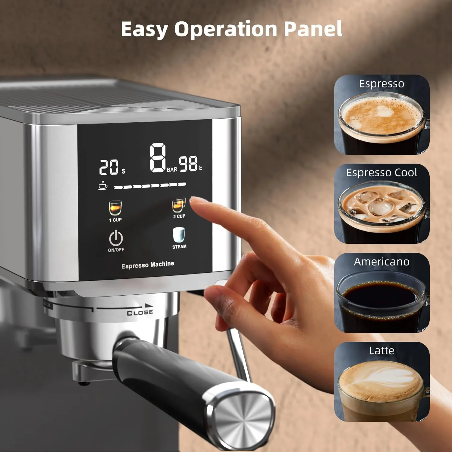 The 20Bar high-pressure pump ensures optimal extraction, producing a smooth, bold shot with a beautiful golden crema. Extract the full flavor and rich aroma from your coffee grounds.