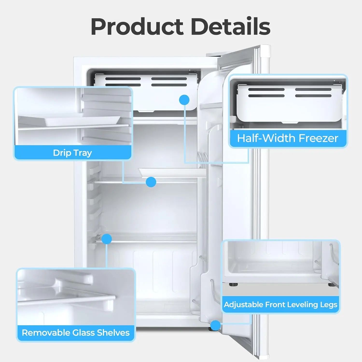 Kismile 3.2 Cu.Ft. Mini Fridge with Freezer Compact Energy-Saving Refrigerator for College Dorms & Offices Adjustable Thermostat Ultra-Quiet Operation 43dB