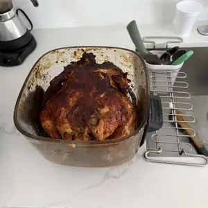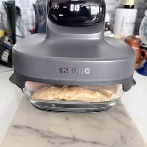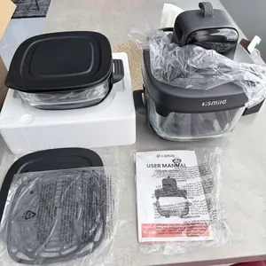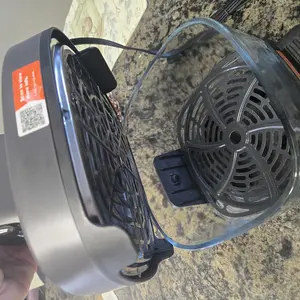 5-in-1 Glass Air Fryer 🍗- Features BAKE, CRISP, ROAST, AIR FRY, and KEEP WARM modes.- Time and temp adjustment available for each mode.- Uses a 1500W turbo heater and dual crystal air fryer glass bowls.
