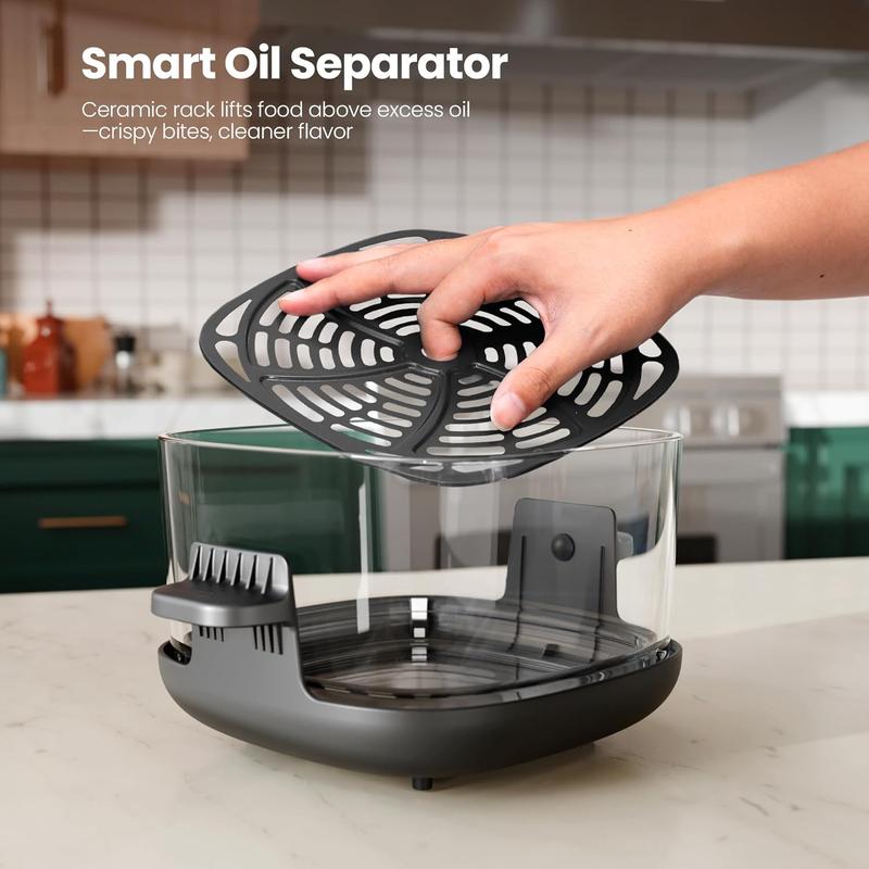 95% Less Oil, 100% Crispy 🍟- Enjoy healthy, crispy meals with 95% less oil.- AIR FRY revives frozen fries, CRISP adds charred grill marks.- BPA-free glass ensures zero plastic taste.