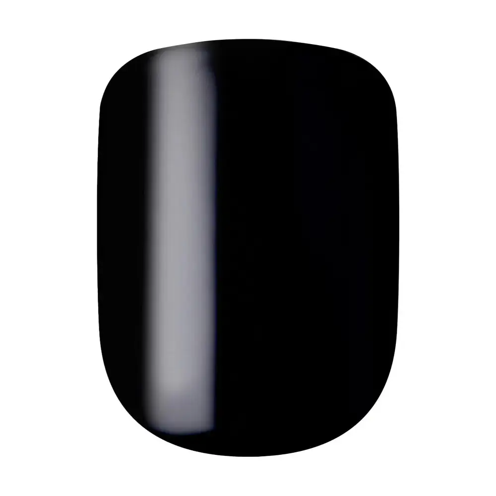 All-black short squoval press-on nails from KISS imPRESS No Glue Mani collection. Sleek, solid color nails with a natural fit and up to 7-day wear — no polish, no dry time.